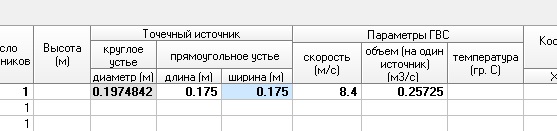 Подозреваю что в программе "Инвентаризация" на Вашем компьютер как раз сделана эта настройка Тогда расчет абсолютно верен (квадратное устье) Если настройка не сделана, то результат будет такой, как Вы посчитали вручную (квадратное устье). А это круглое устье ("Инвентаризация") А это круглое устье ("ПДВ-Эколог"). Квадратные устья в "ПДВ-Эколог" не задаются. P.S. Релизы обеих программ необходимо обновить.