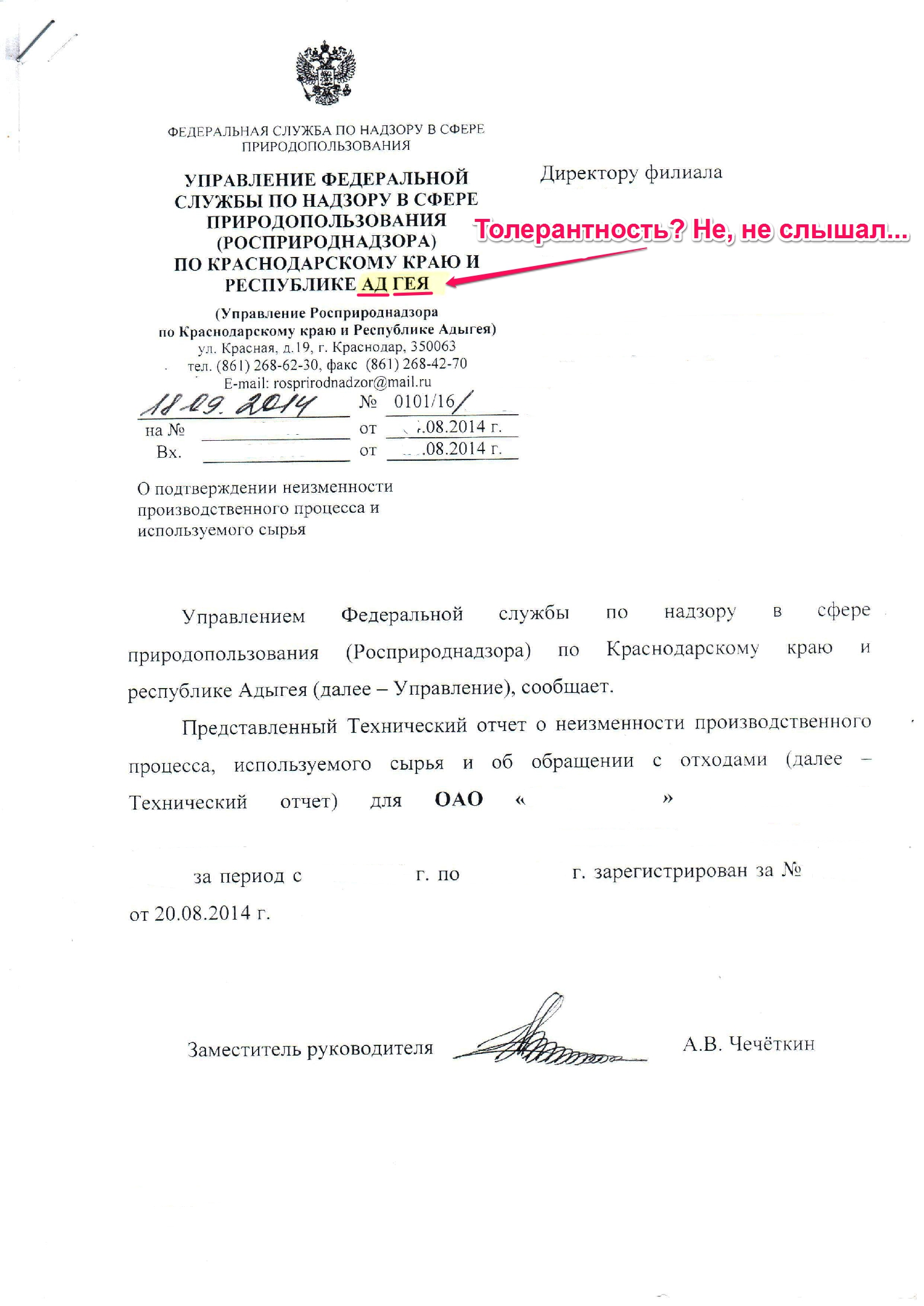 Обнаружили вот такое замечательное письмо Росприроднадзора одного нового субъекта РФ...ну очень нетерпимого к некоторым слоям населения!