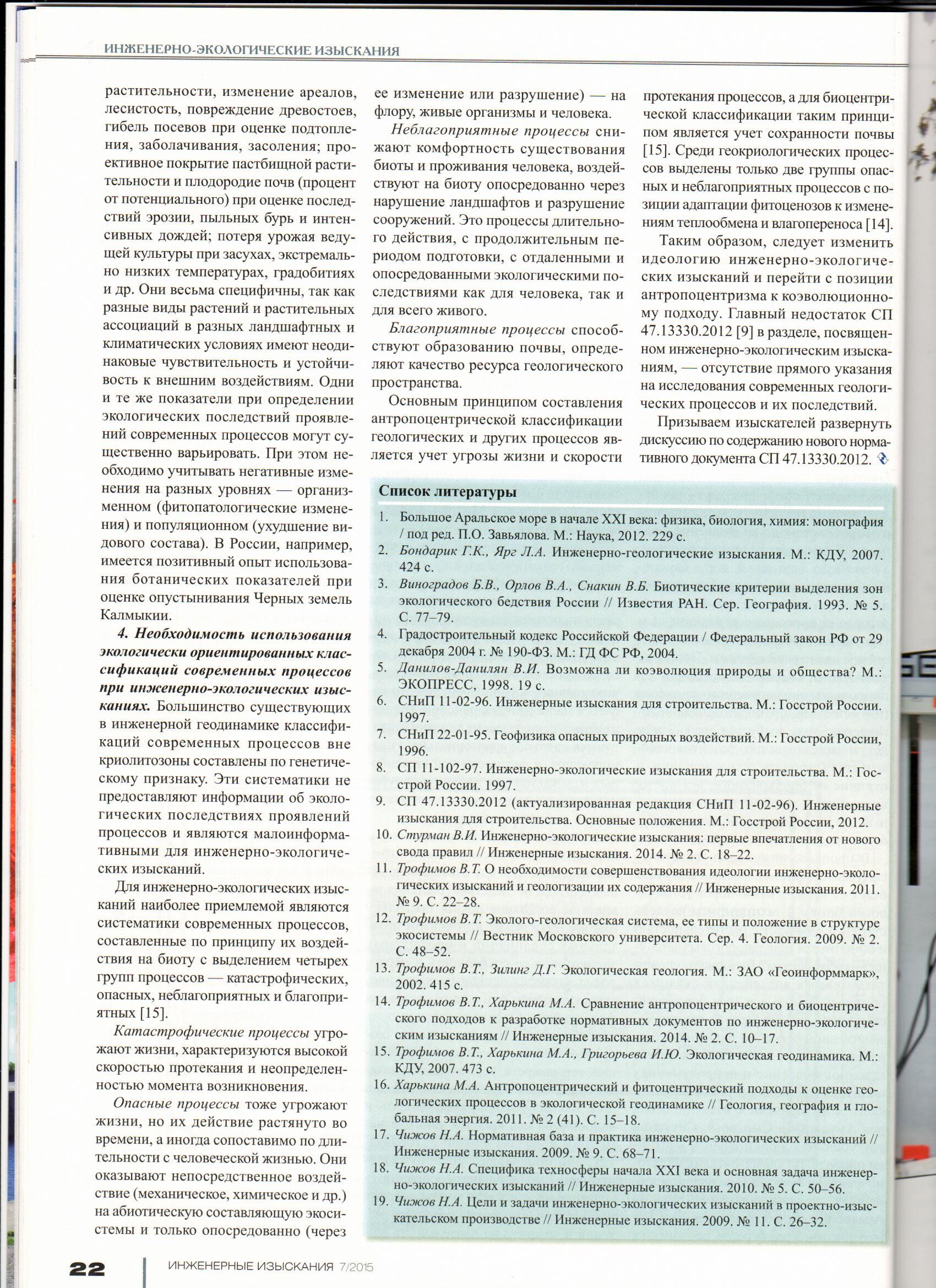 Так товарищи и есть инж-геологи (даже полугеографы) с геолфака МоскГУ.. Виктор Титович вообще идеолог "экологической геологии" - этакий возврат к ландшафтоведению через призму инженерной геологии, вот и пишет о наболевшем.. пытается на хлебушек заработать.. Работы описанные товарищами - геологические, а вот интерпретация выводов - экологическая.ГЭТИ писал(а):...Однако заставляет задуматься перекладывание части функций инженерно-геологических и инженерно-гидрометеорологический изысканий на экологию...
