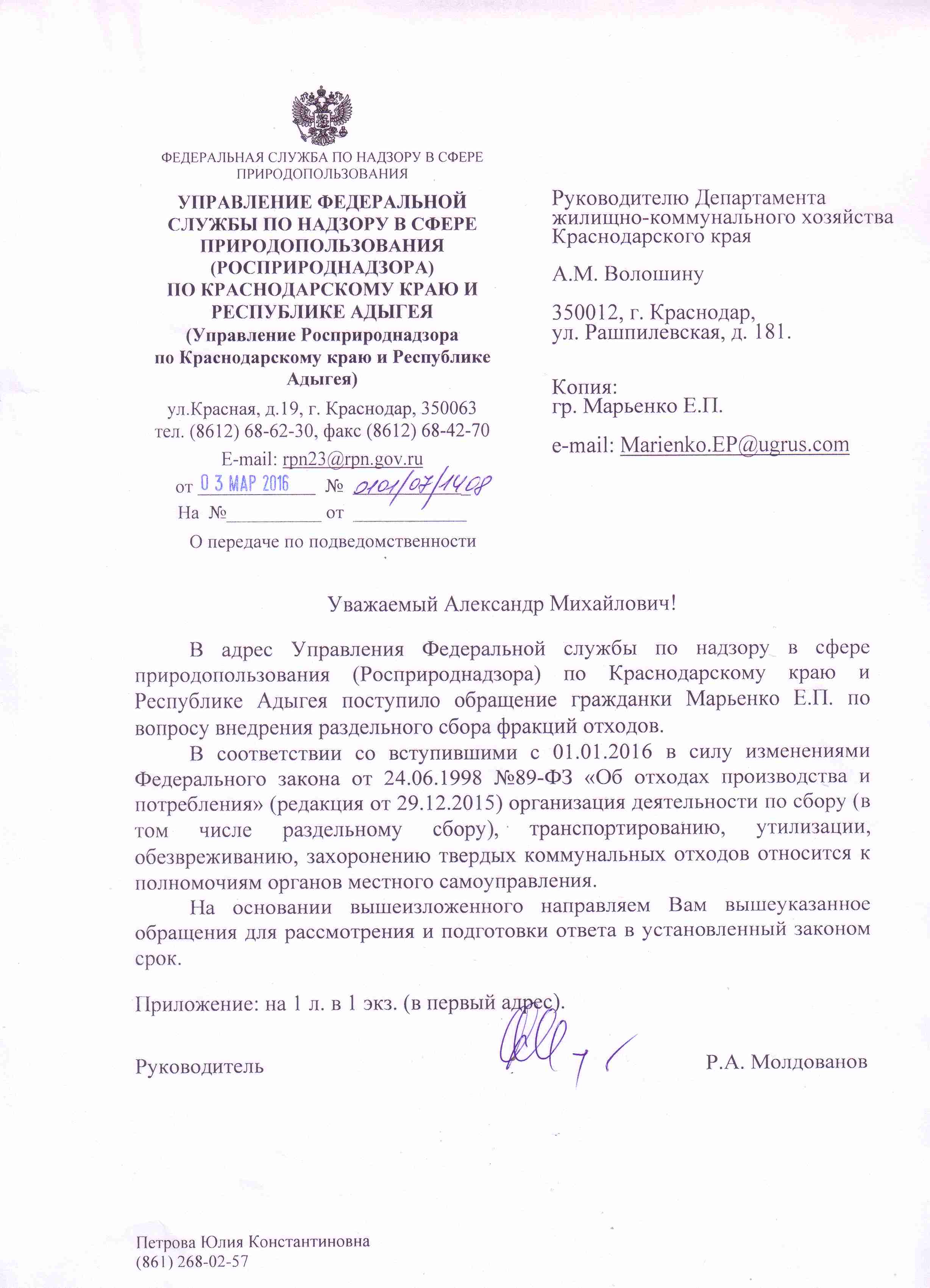 "Возможность РСО (раздельного сбора отходов) зависит от федерального и регионального законодательства, экономики перерабатывающей отрасли, ее состояния. Нет законодательных норм для РСО. Со своей стороны администрация города делает все возможное".