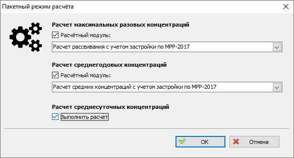 Требует наличия расчетного блока "Средние" или "Средние с застройкой" и метеофайла (приобретаются отдельно).
