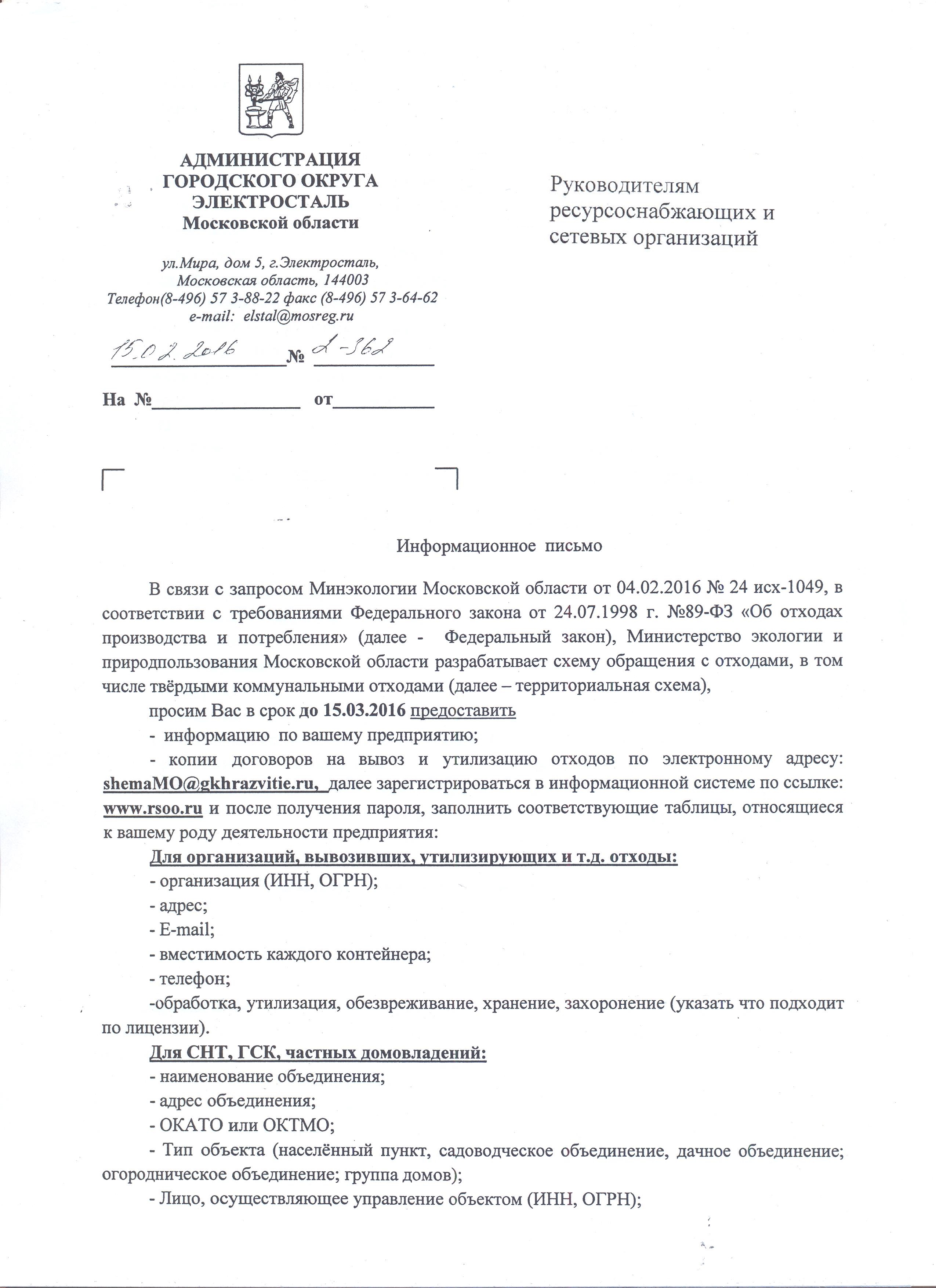 Вчера получила письмо от администрации кас. предоставления сведений для формирования тер. схемы обращения с отходами в МО. (письмо во вложении)