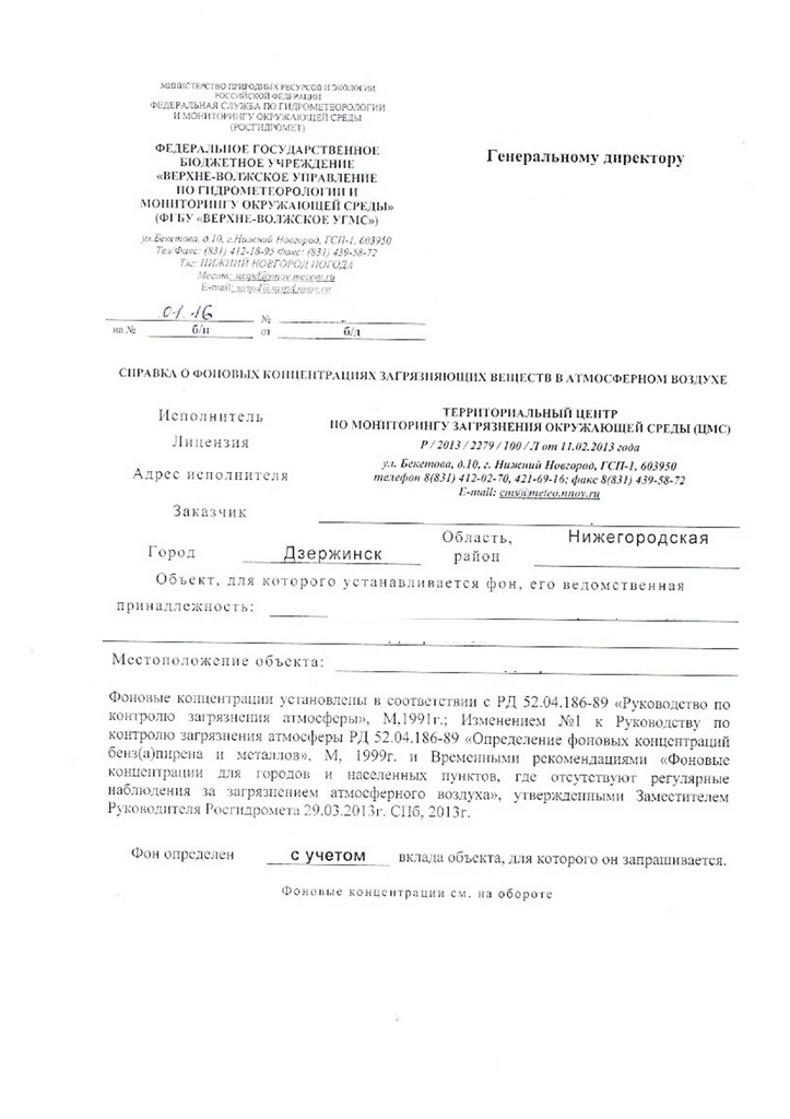 Не найдется ли случайно у кого-нибудь справки о фоновых концентрациях для Дзержинска Нижегородской области, желательно, из открытых источников (из какого-нибудь скачанного в Интернете ОВОСа, например)?