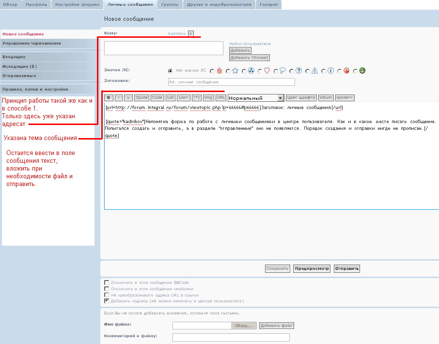 Непонятна форма по работе с личными сообщениями в центре пользователя. Как и в каком месте писать сообщение. Попытался создать и отправить, а в разделе "отправленные" оно не появляется. Порядок создания и отправки нигде не прописан.