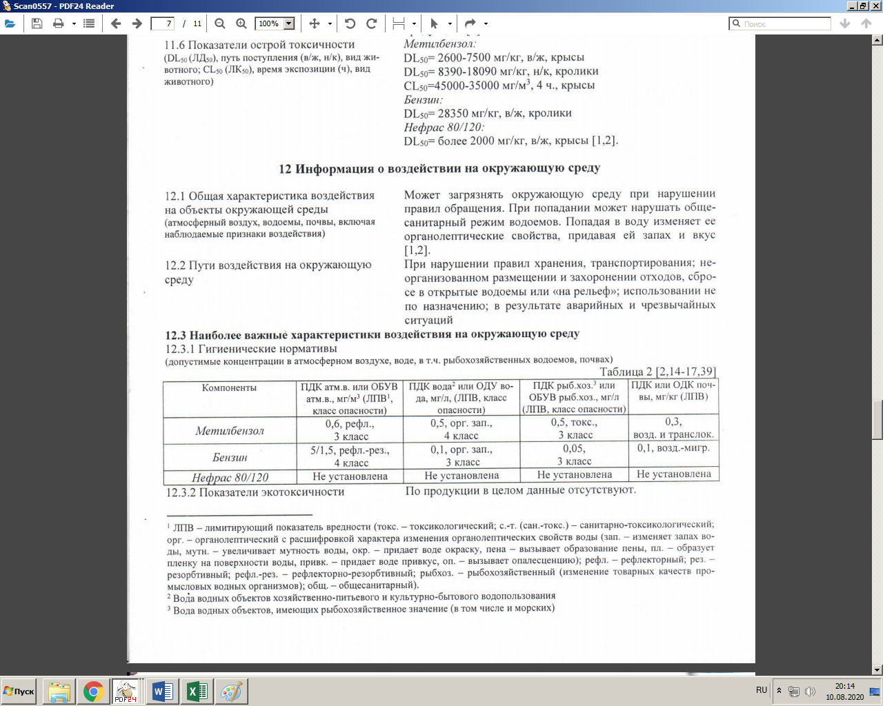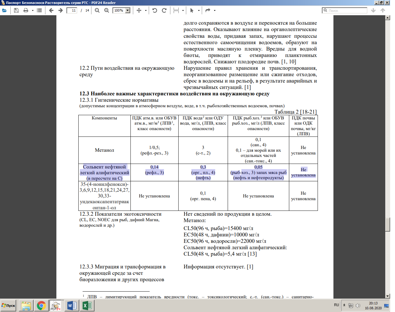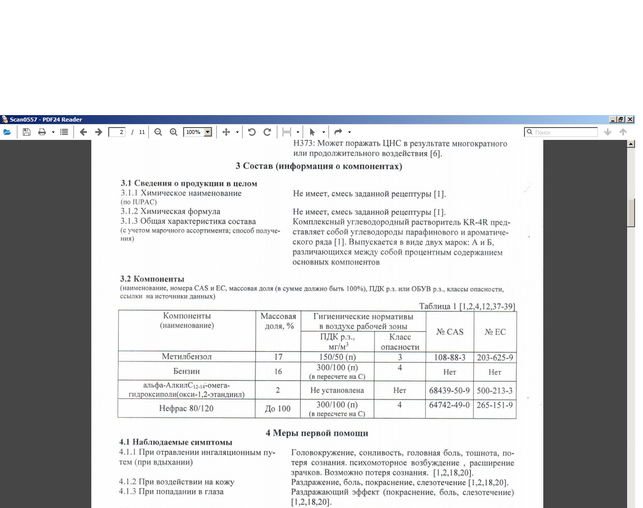 СИНОНИМЫ: Бензин-галоша, каучуковый растворитель; растворитель (нафта) легкий алифатический; Нефрас С2 80/120, Согласно Приложению 1 пункт 11 Методического пособия,СПб, 2012, Бензин-растворитель (БР), нормируется как уайт-спирит (код 2752 (уайт-спирит), ОБУВ = 1,0 мг/м3;).Хаматова Ю.Р. писал(а): 17 июн 2020, 15:30 сольвент нефтяной легкий алифатический (углеводороды алифатические предельные, в пересчете на С) номер CAS: 64742-89-8