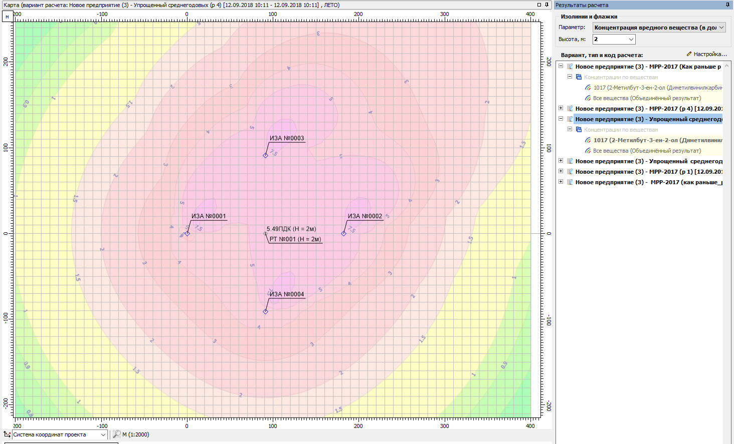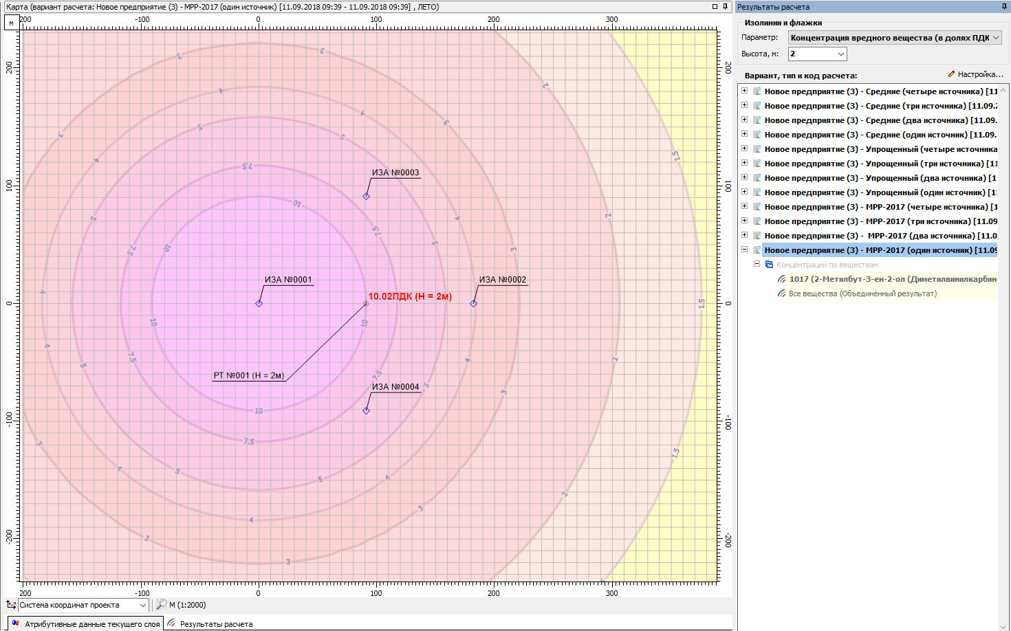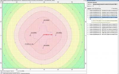 2. В Упрощенных средних наблюдается кумулятивный эффект, как в полноценных Средних. С ростом числа источников концентрация в точке увеличивается пропорционально количеству источников.