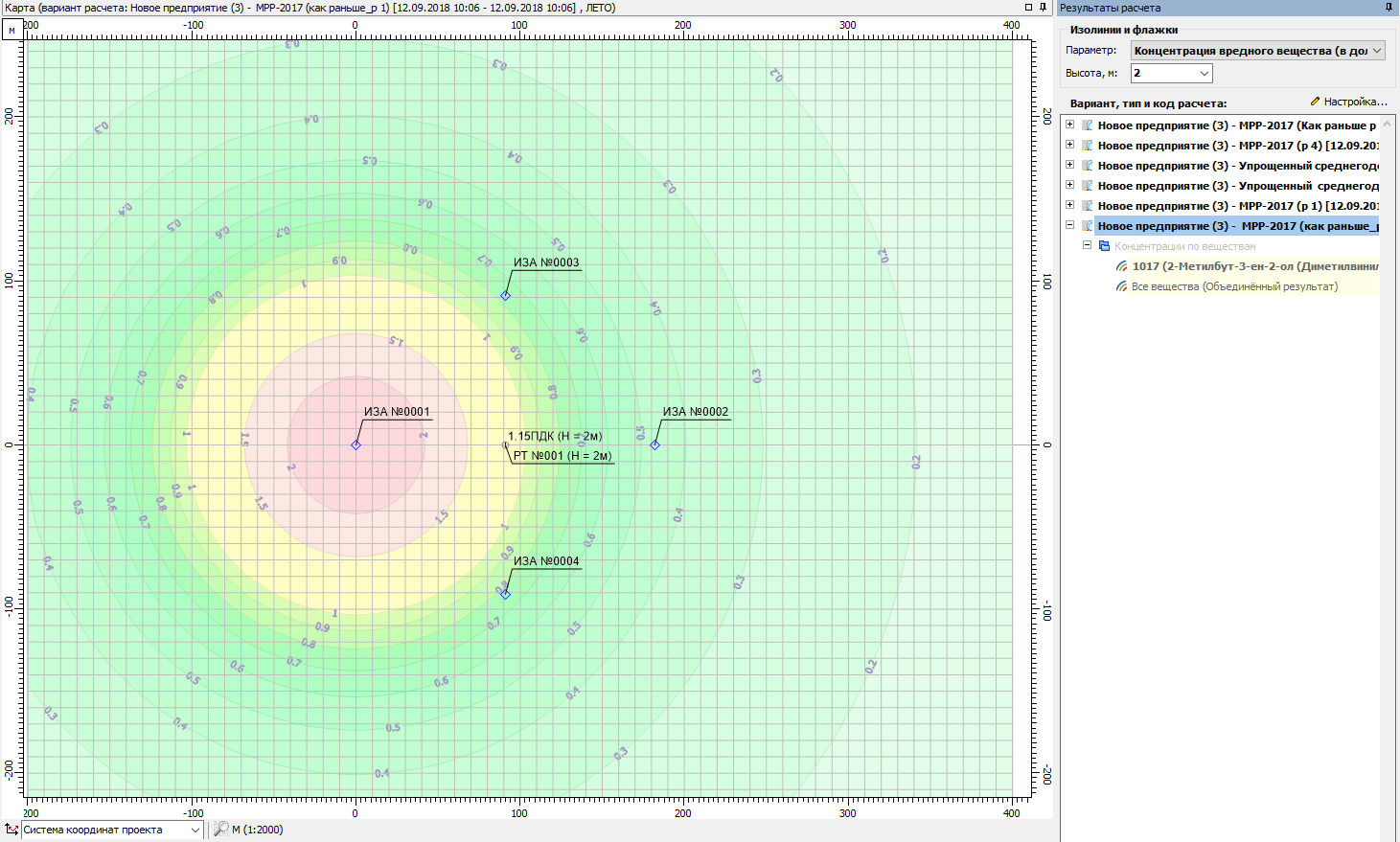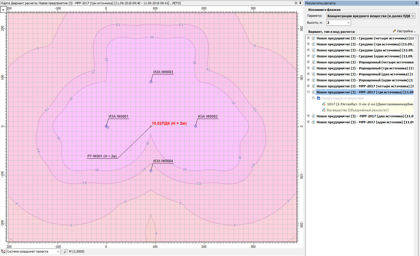 3. При одном источнике концентрация в точке для Упрощенных средних и для "Как раньше в ОДН-86 (См/10)" совпадают (ведь мы взяли круглую розу ветров). При дальнейшем росте количества источников результаты разнятся, тем больше, чем больше количество источников.