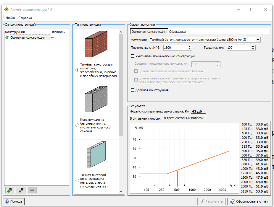 Методика расчета модуля Расчет звукоизоляции