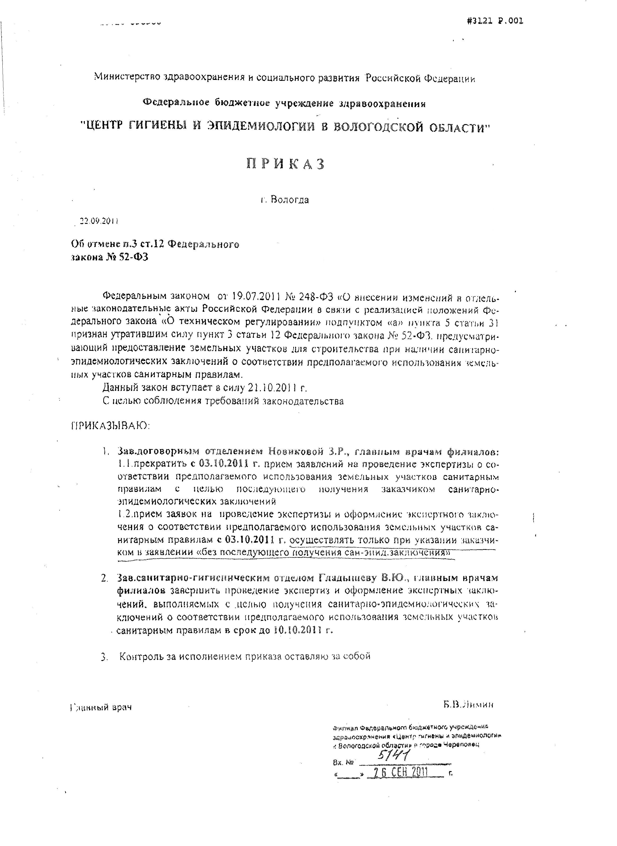 ЮВ писал(а):Федеральный закон от 30.03.1999 N 52-ФЗ "О санитарно-эпидемиологическом благополучии населения"(ред. от 28.09.2010)