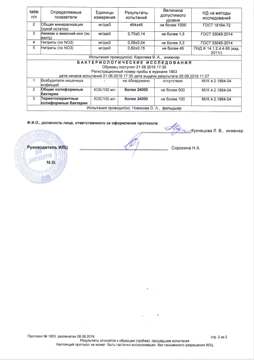 Уважаемые специалисты, пришёл ответ из РОспотребнадзора с результатами проб воды. Оцените пожалуйста.