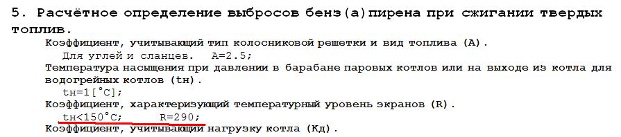 Солгасно п.3.4.2 "МЕТОДИКИ ОПРЕДЕЛЕНИЯ ВЫБРОСОВ ЗАГРЯЗНЯЮЩИХ ВЕЩЕСТВ В АТМОСФЕРУ ПРИ СЖИГАНИИ ТОПЛИВА В КОТЛАХ ПРОИЗВОДИТЕЛЬНОСТЬЮ МЕНЕЕ 30 ТОНН ПАРА В ЧАС ИЛИ МЕНЕЕ 20 ГКАЛ В ЧАС" МОСКВА 1999 в формуле 56 (расчет бензапирена) присутствует коэффициент R - а в распечатке отчета программы при расчете по данной формуле не учитывается R - почему? [!help]