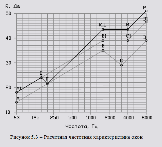 Спасибо большое. Только вот вопрос. В СП 23-103-2003 написано в примере 10, что "Поскольку частота резонанса лежит на границе нормируемого частотного диапазона, точки А1 и Е в данном случае не входят в частотную характеристику, которую требуется построить. Тоже самое и с точкой Р на Вашем приложенном рисунке. Так как быть? Ведь частота резонанса посчитанная мной для стеклопакетов равна 250Гц