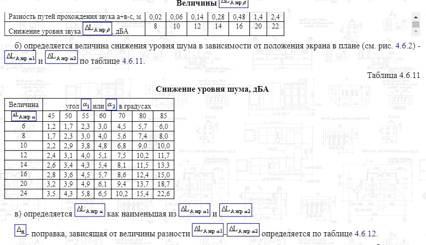 судя по рисунку, α1 и α2 - это уже углы от перпендикуляра, проведенного от РТ к экрану, и крайними концами экрана - точкой влияния прямого и отраженного шума. Как указано в комментариях в таблице, из двух значений выбирается наименьшее - т.е. с какой стороны экрана шумит сильнее из-за меньшего расстояния.Янат писал(а): 06 апр 2021, 22:18 Коллеги, подскажите. Пытаюсь рассчитать длину экрана по Рекомендациям по учету требований по охране окружающей среды при проектировании автомобильных дорого и мостовых переходов. Вот рисунок где показано как найти длину экрана1.jpg