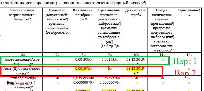 Инвентаризация есть, но она же не является нормативомyu. писал(а): 19 мар 2020, 15:32Если не установлены предельно допустимые выбросы ставится 0. Так как у Вас этих данных нет. А инвентаризации по выбросам тоже нет ?Петро 2000 писал(а): 19 мар 2020, 11:15 Добрый день! Подскажите, если нет установленных нормативов выбросов, как заполнять таблицу 2.2 графу 7, 8, 9???? как вар.1 или вар. 2?