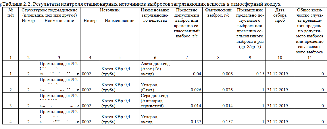 yu. писал(а): 19 мар 2020, 15:32Если не установлены предельно допустимые выбросы ставится 0. Так как у Вас этих данных нет. А инвентаризации по выбросам тоже нет ?Петро 2000 писал(а): 19 мар 2020, 11:15 Добрый день! Подскажите, если нет установленных нормативов выбросов, как заполнять таблицу 2.2 графу 7, 8, 9???? как вар.1 или вар. 2?