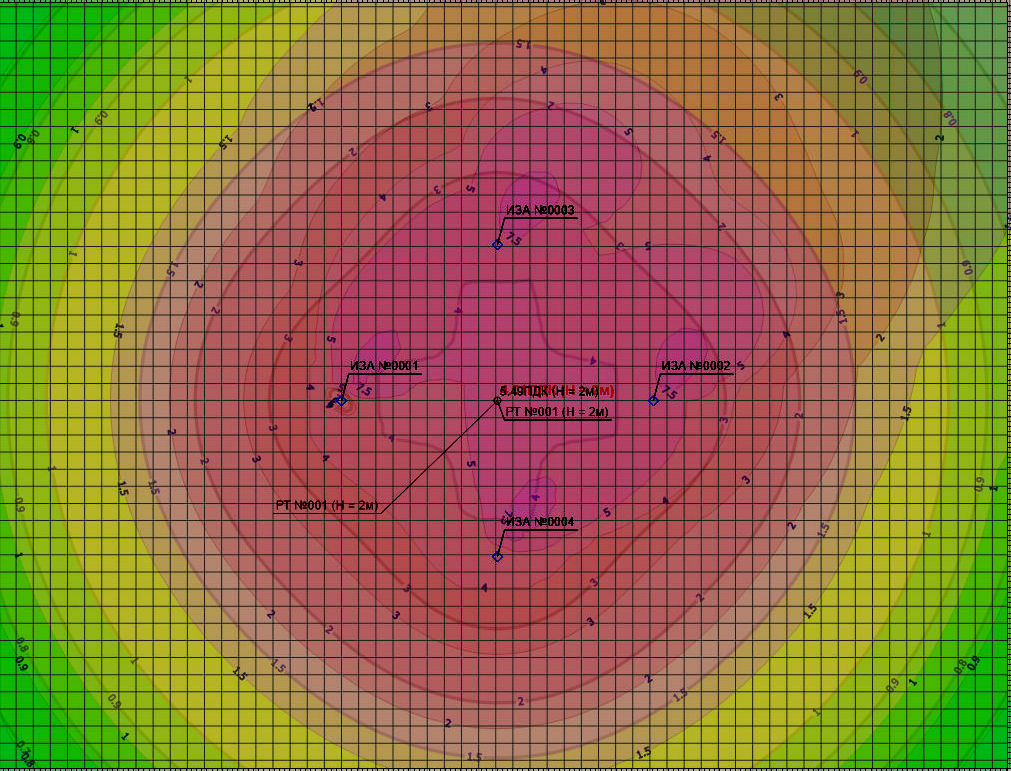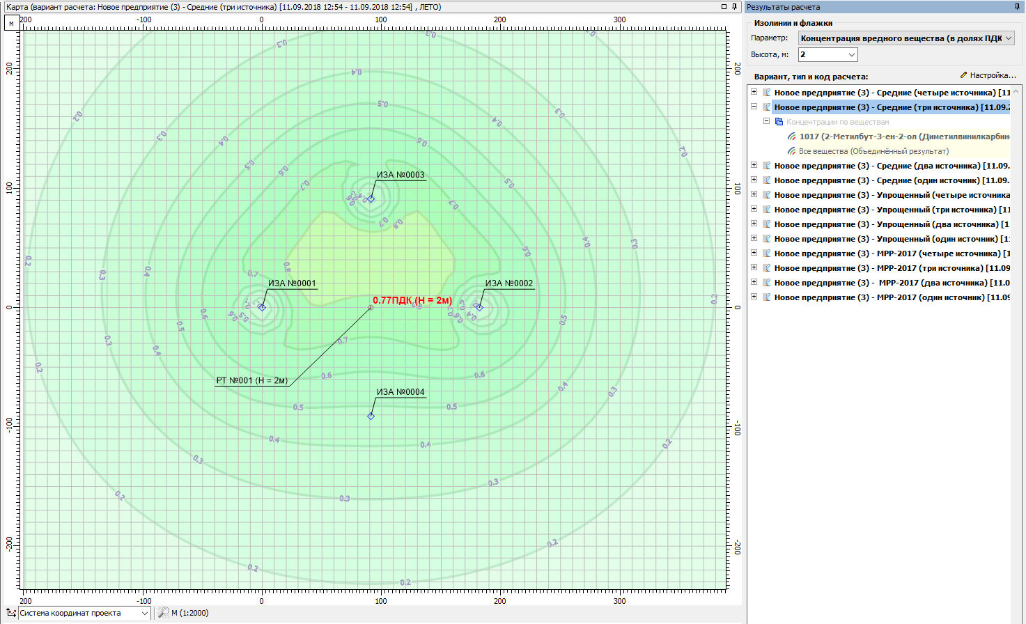 2. В Упрощенных средних наблюдается кумулятивный эффект, как в полноценных Средних. С ростом числа источников концентрация в точке увеличивается пропорционально количеству источников.