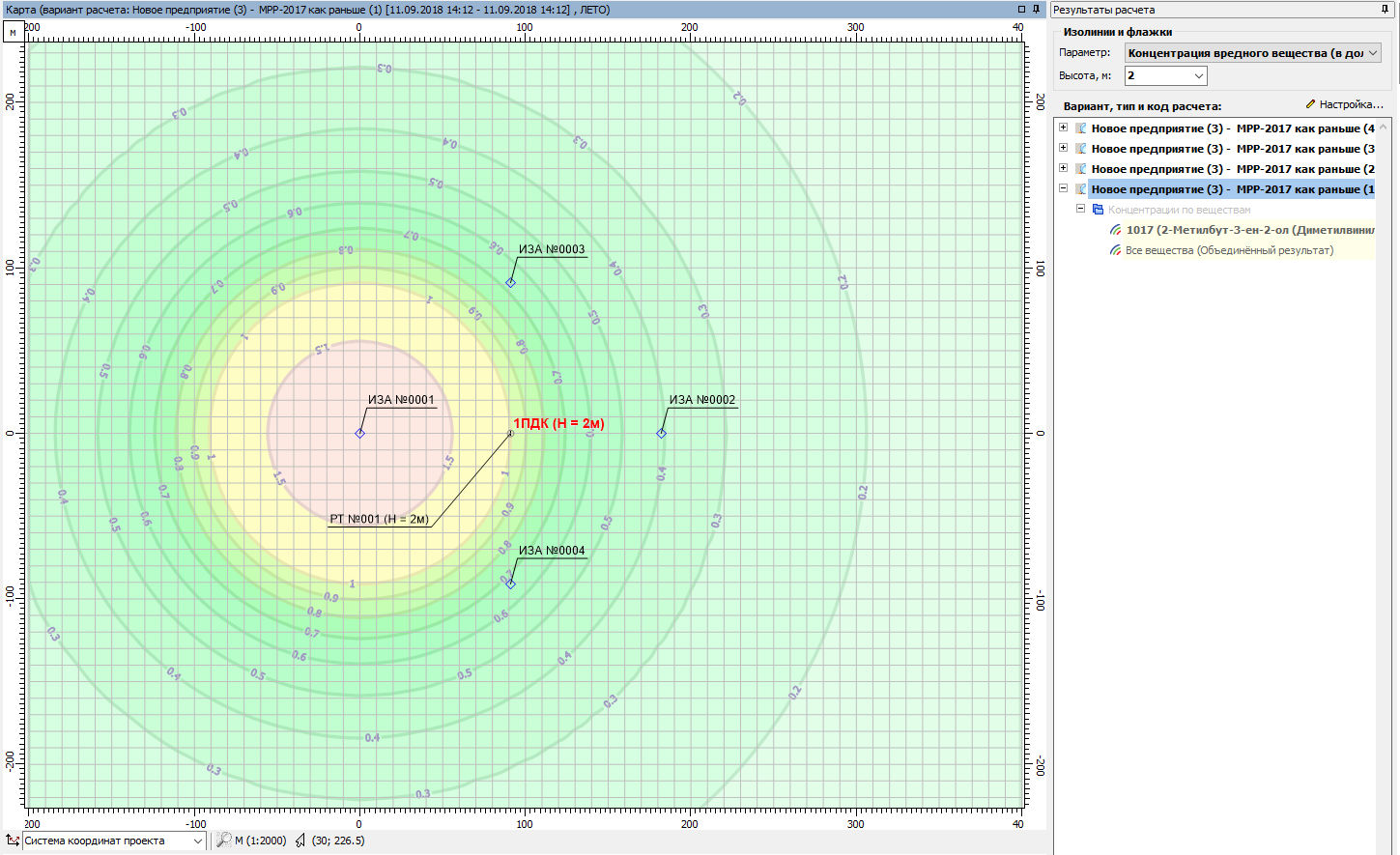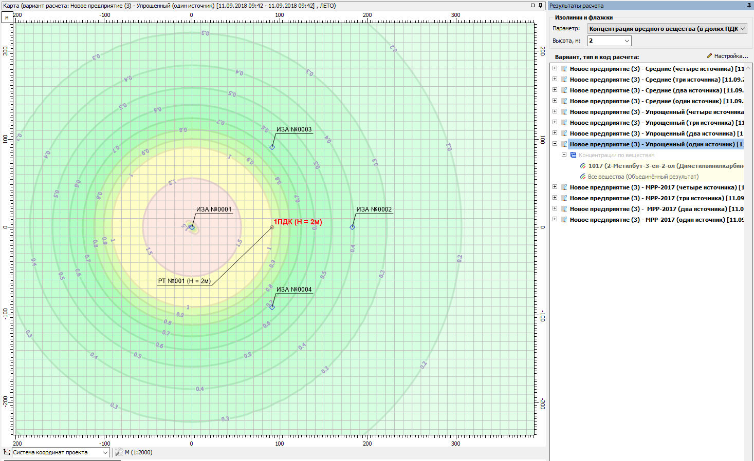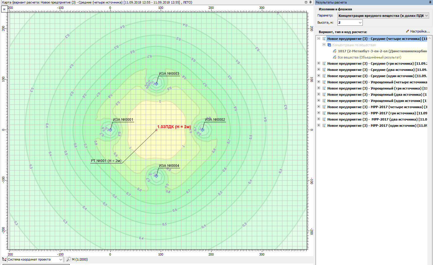 3. При одном источнике концентрация в точке для Упрощенных средних и для "Как раньше в ОДН-86 (См/10)" совпадают (ведь мы взяли круглую розу ветров). При дальнейшем росте количества источников результаты разнятся, тем больше, чем больше количество источников.