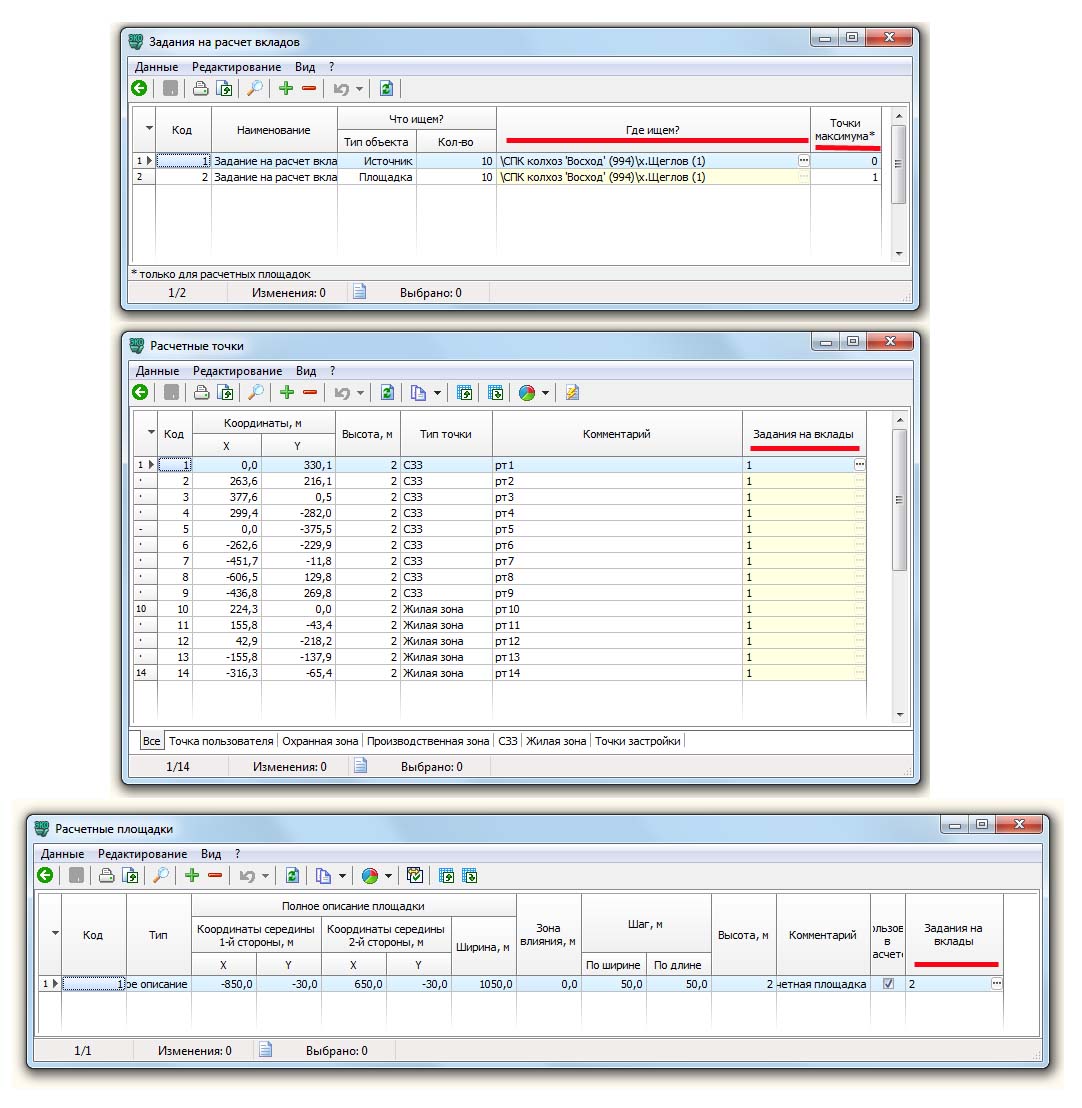 ЕкатеринаСме, Проверьте в УПРЗА, заполнены ли выделенные на скане колонки - задание на расчет вкладов, расчетных точек и площадок.