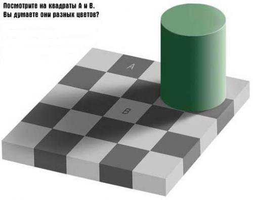 Ну вот например такую загадку. Как вы думаете квадраты A и Б разного цвета?