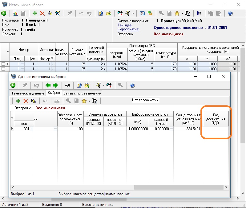 4. Вытащил перечень ЗВ на сущ и перспективу, выбросы верные. Вытащил нормативы. На сущ. выбросы верны, а в перспективе не отображаются ни новые ни старые выделения, которые подвергаются изменениям.