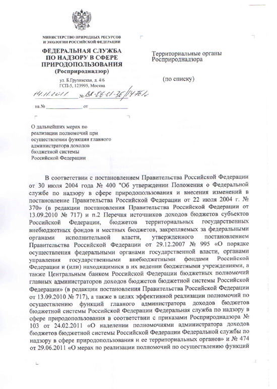 2. Письмо Росприроднадзора от 14.11.2011 №ВК-06-01-36/14762 не зарегистрировано Минюстом и не является нормативно-правовым документом.