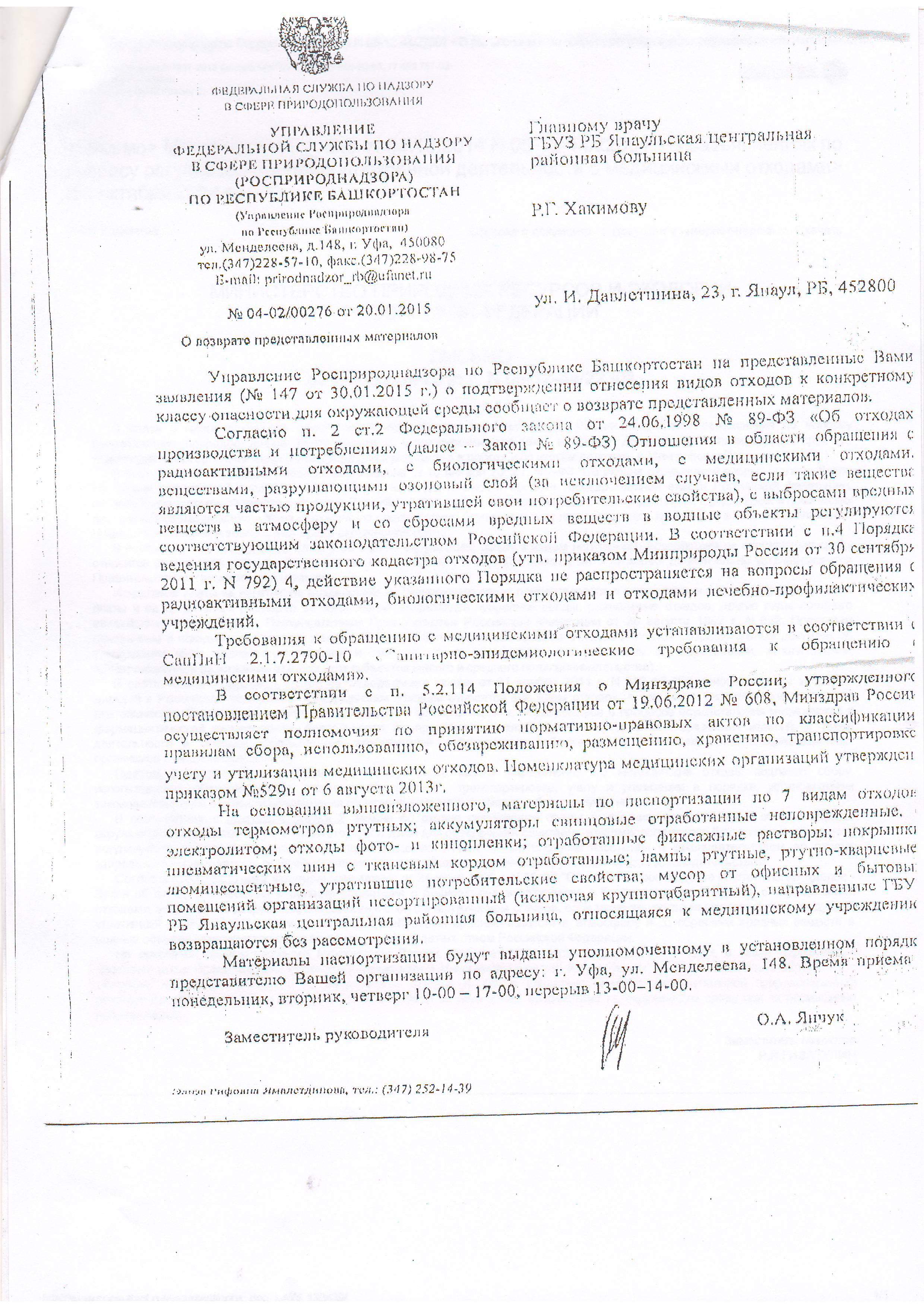 "У каждого РПН своя позиция по ЛПУ (мед. отходам)". Это не так!!! Минприроды и РПН РФ есть письма от 22.04.2015 г. [!rules]
