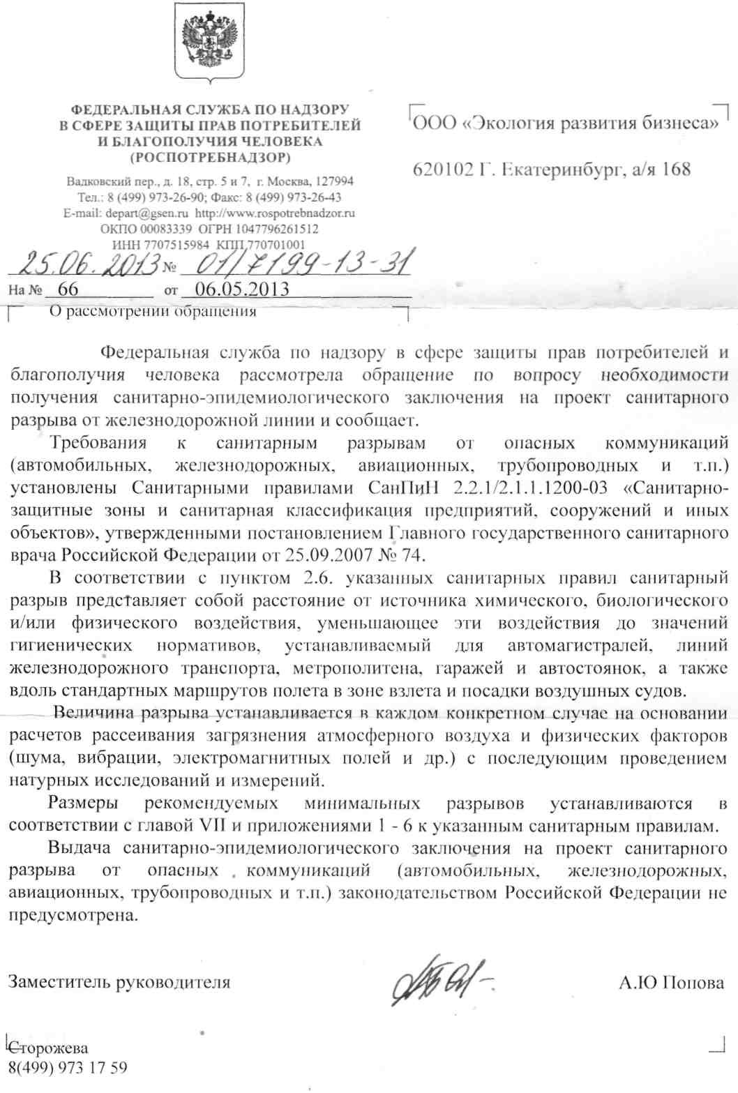 Нового я ничего не увидела, знаю это письмо. Был объект:реконструкция ж/д путей, экспертиза попросила сан-эпид заключение на проект сан-разрыва, мы это письмо им и предоставили, вопросов больше не было. А разрыв будем делать на часть путей, где близко жилье. Тут дело в здании вокзала, это станция, а не просто пути, поэтому приходится назначать СЗЗ от всего комплекса. Я, честно говоря, уже устала долбить об одном и том же. Я элементарно попросила помощи, совета, а тут начинаются какие-то ржаки! Сделаем мы этот объект, все будет нормально, пускай сложно, справимся. С РЖД работали, разберемся.