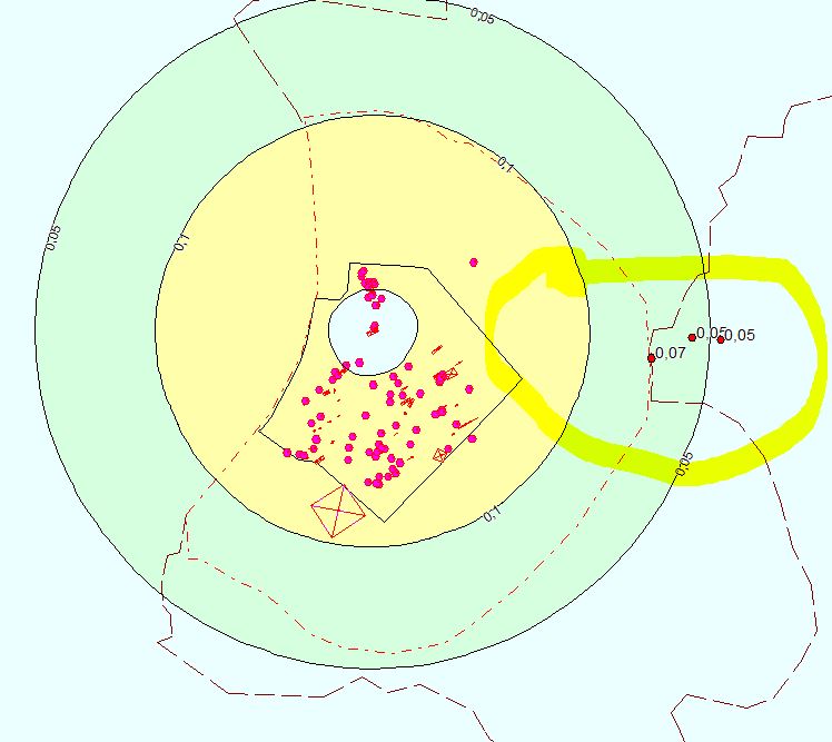 Вадим, при изменении коэффициент оседания с 1 на 3 для пыли (2908), в расчетной точке на границе СЗЗ, происходит увеличение концентрации на 0,5 ПДК (а на площадке максимум увеличился на 1 ПДК). Так и должно быть при рассеивании в "Экологе"?