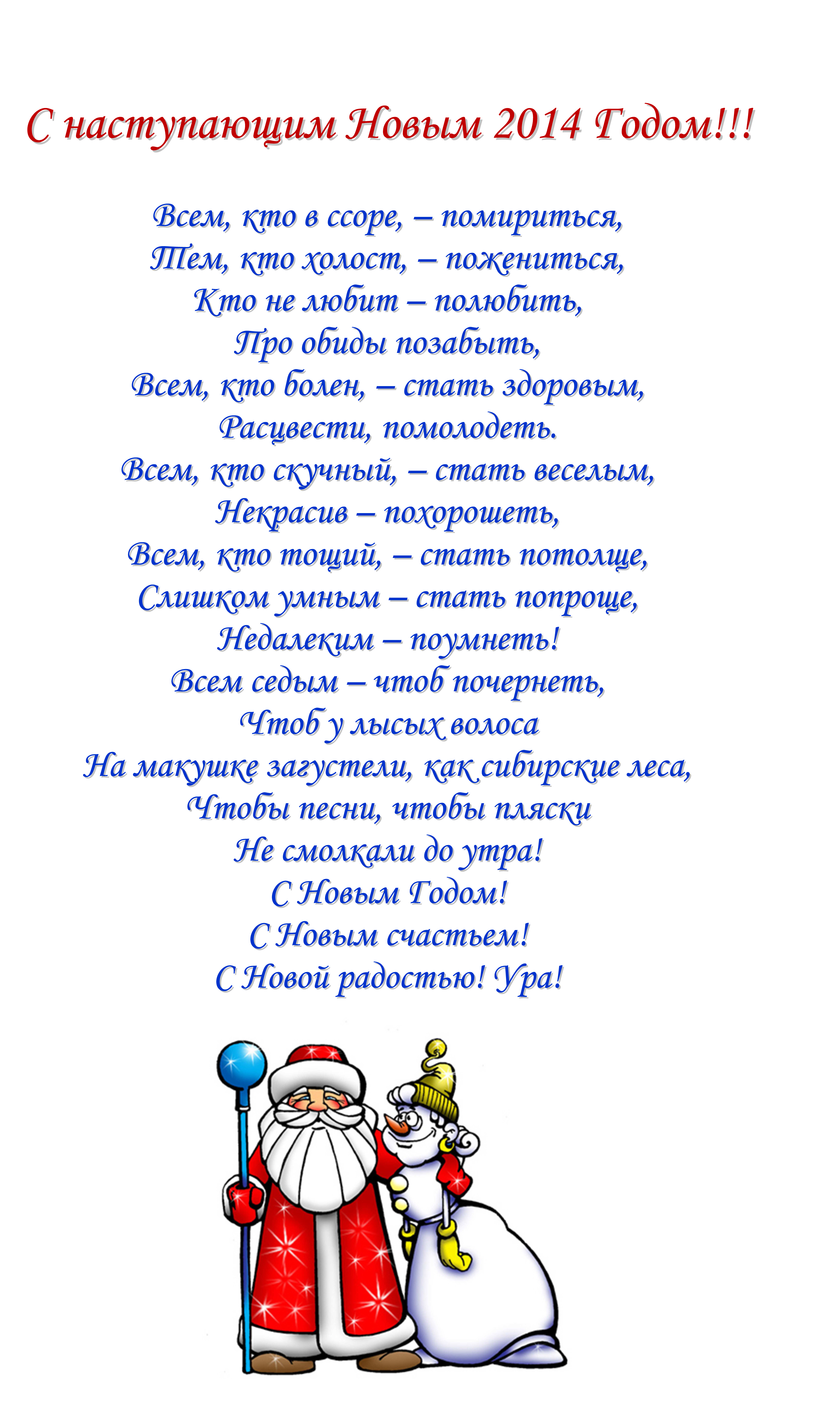 Пусть новый год исполнит все то, что не успел уходящий!!!!!!!!!