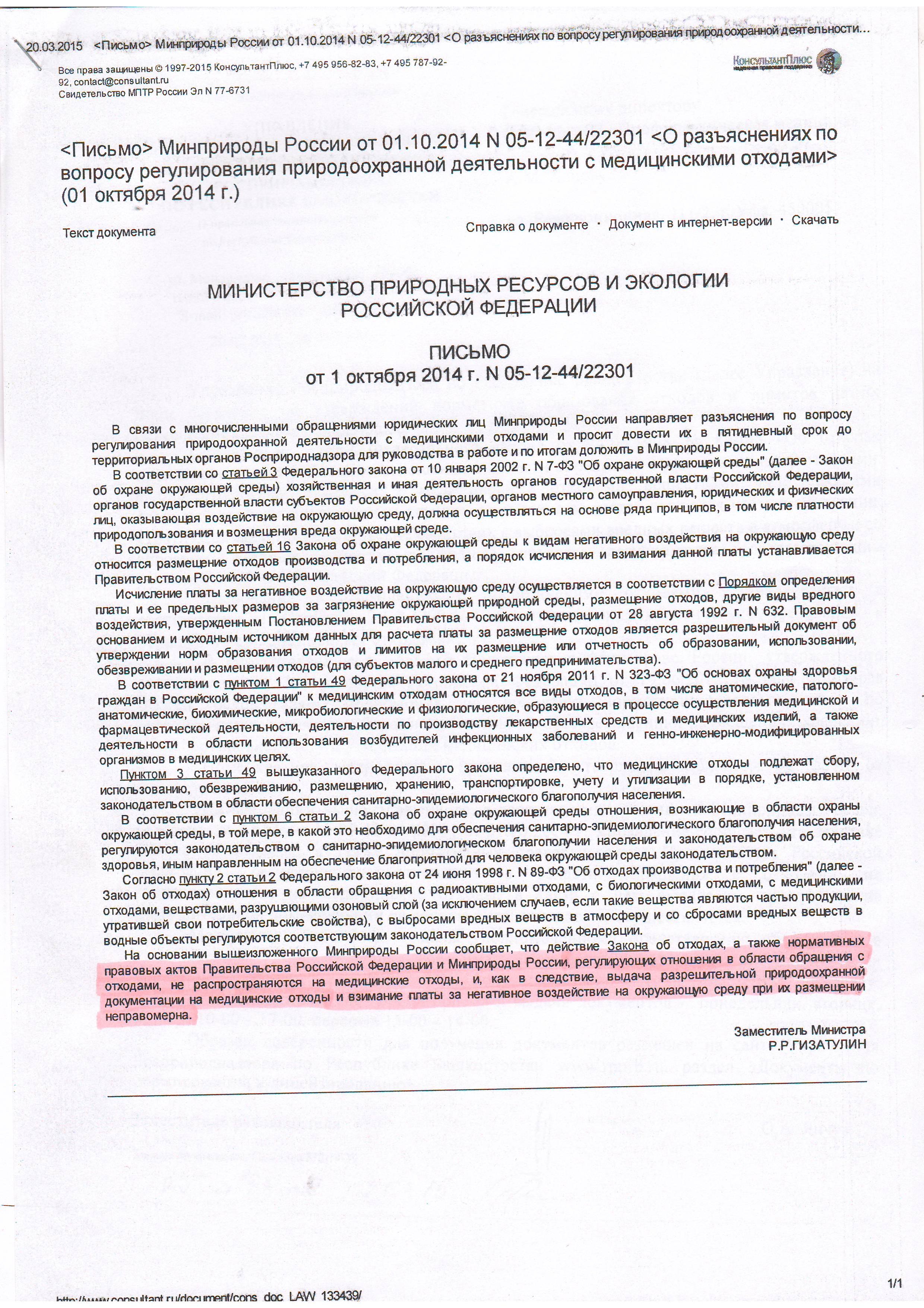 - Приказ Минприроды России от 01.10.2014 № 05-12-44/22301.