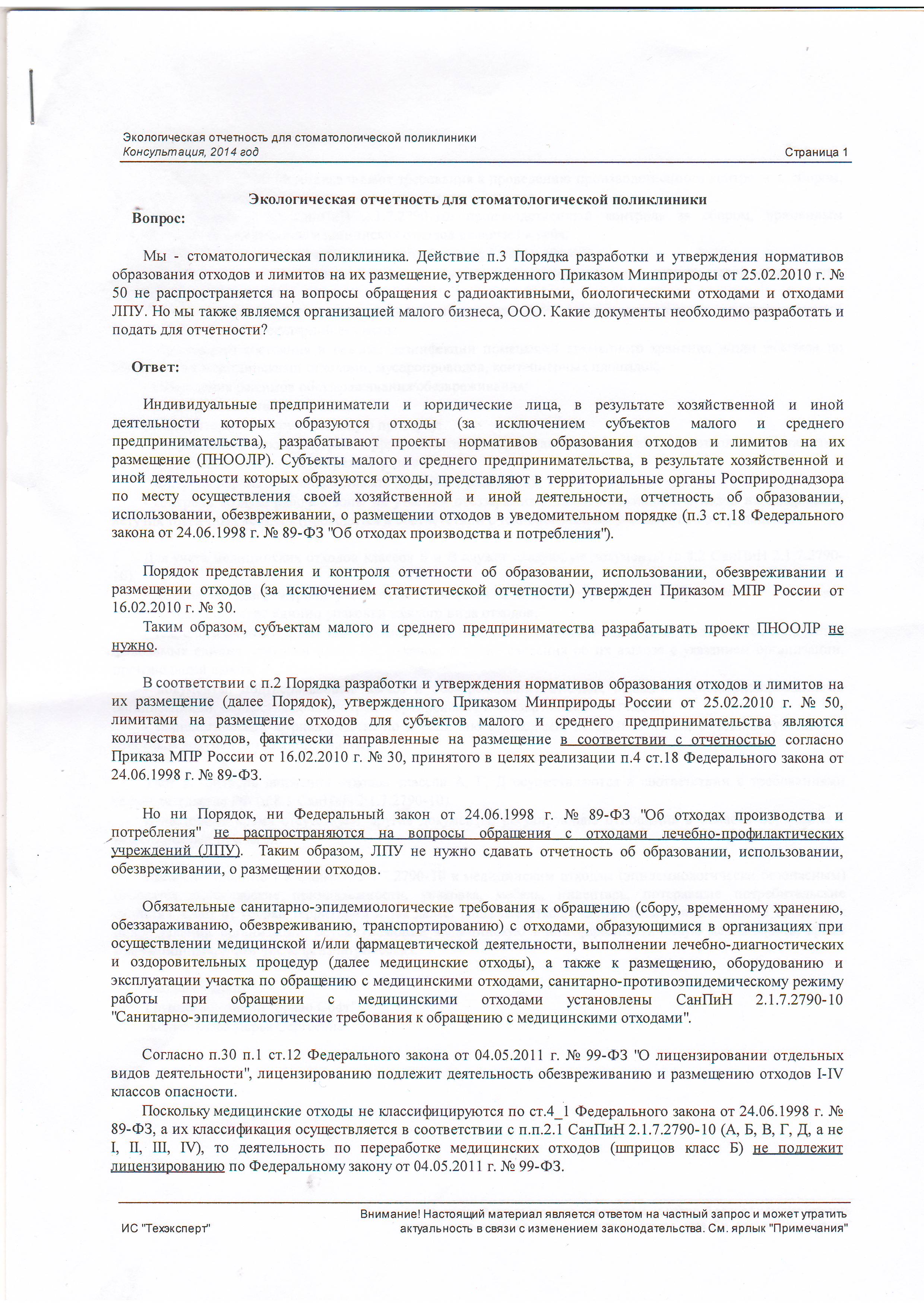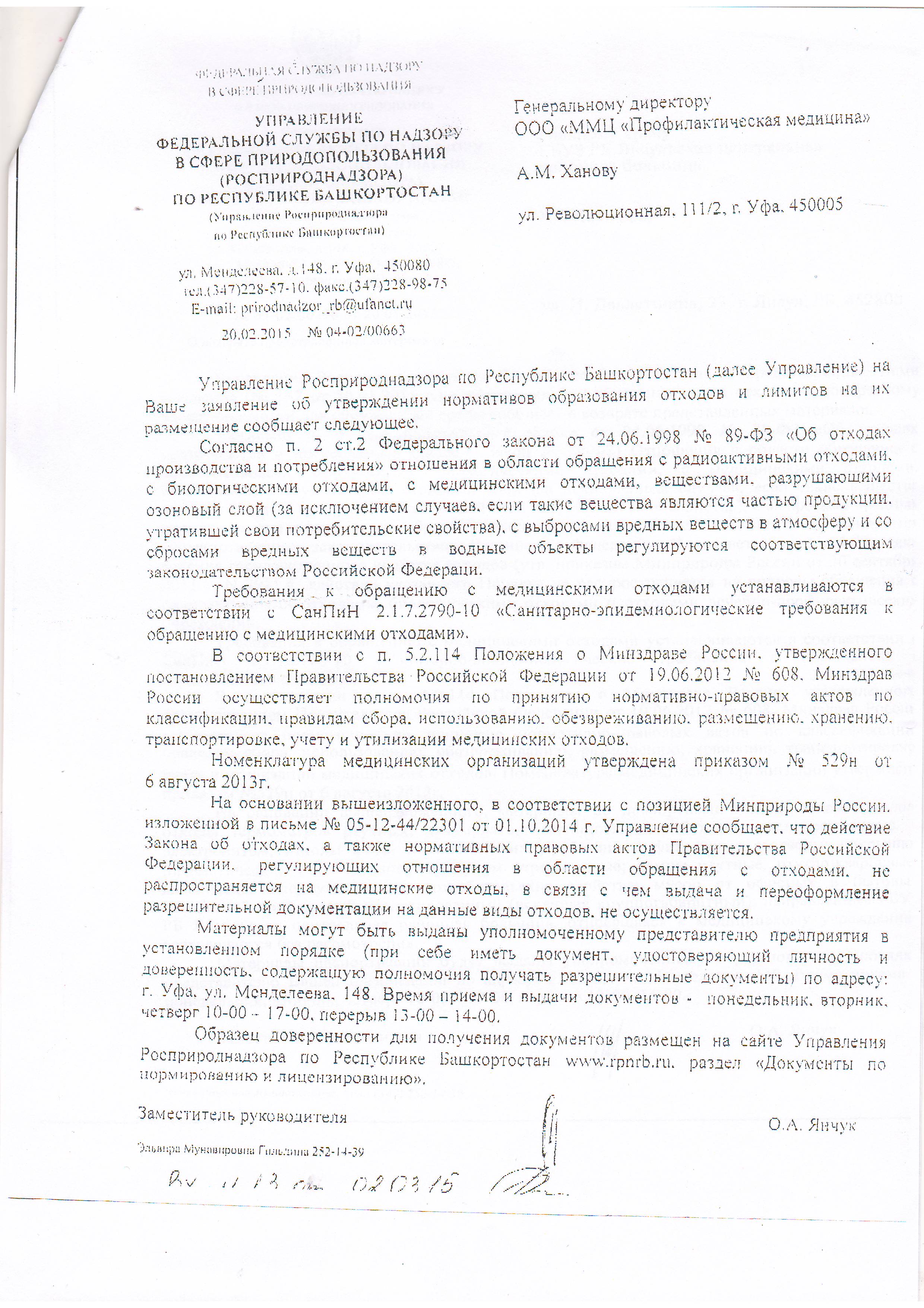 Фаниль писал(а):"У каждого РПН своя позиция по ЛПУ (мед. отходам)". Это не так!!! Минприроды и РПН РФ есть письма от 22.04.2015 г. [!rules]
