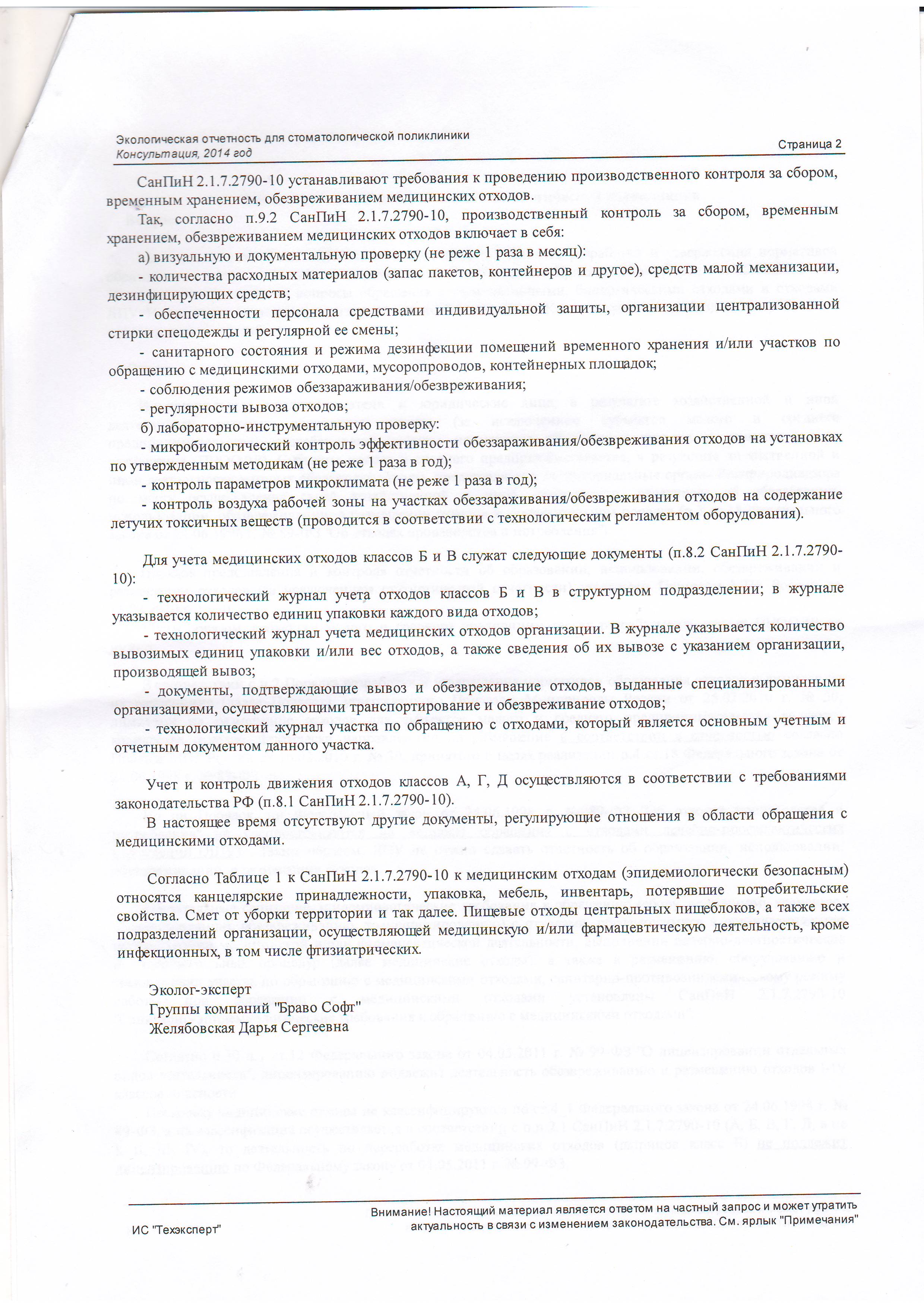 Ссылаясь на 1) ФЗ-89 ст. 2, пункт 2; 2) СанПиН 2.1.7.2790-10 «Санитарно-эпидемиологические требования к обращению с медицинскими отходами»; 3) Федерального закона от 21.11.2011 № 323-ФЗ «Об основах охраны здоровья граждан в Российской Федерации» (в ред. от 25.06.2012); 4) Приказ Минприроды России от 01.10.2014 № 05-12-44/22301