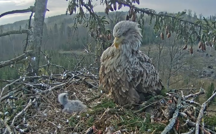 Черный аист http://pontu.eenet.ee/player/melnais-starkis.html новая ссылка, в гнезде два птенца