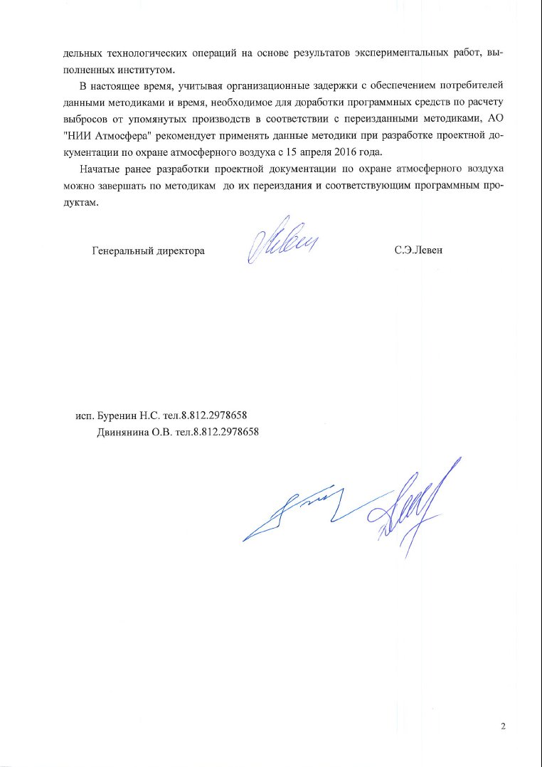 Re: Перечень методик, используемых в 2016 г. для расчета, нормирования и контроля выбросов ЗВ