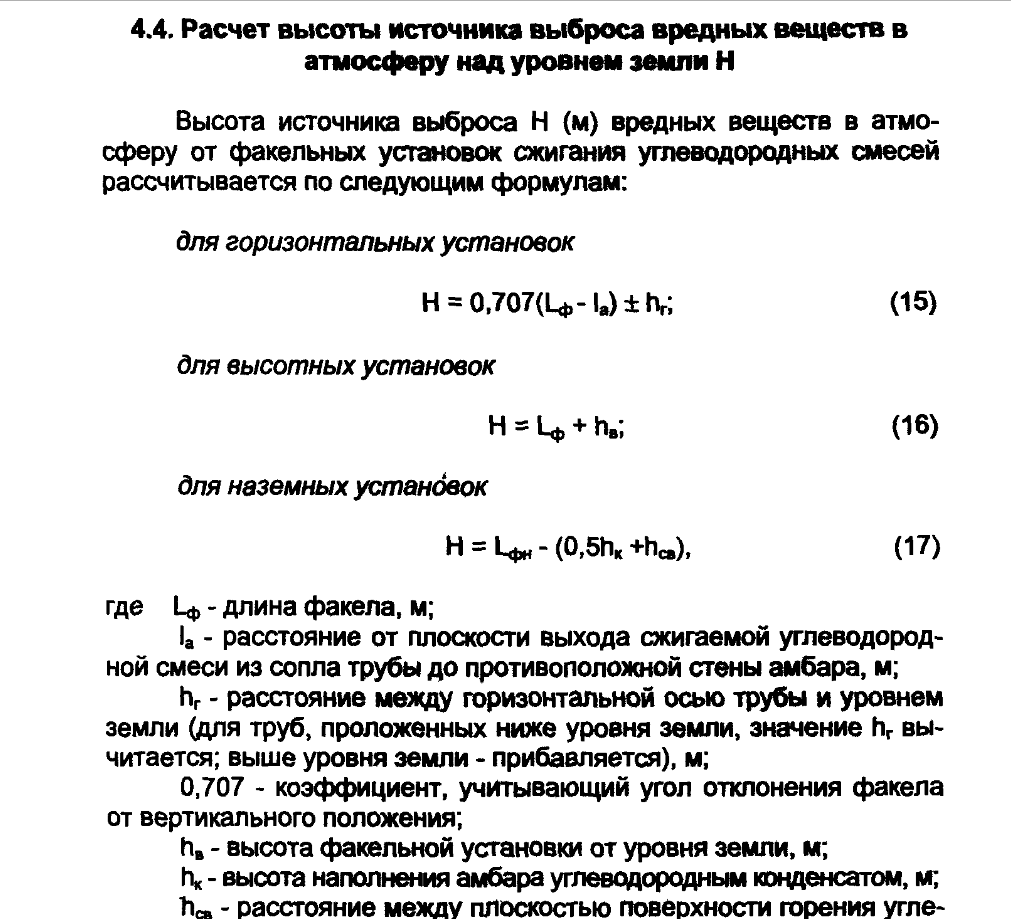 есть косвенное. Нам нужна такая высота ствола, чтобы подставив ее в формулу мы получили "достаточную" высоту выброса из источника в атмосферу, ту которая будет обеспечивать гигиенические нормативы в расчетных точках.tehnolog писал(а): 15 янв 2021, 10:25 есть ли в документах экологов требование к высоте факельного ствола,