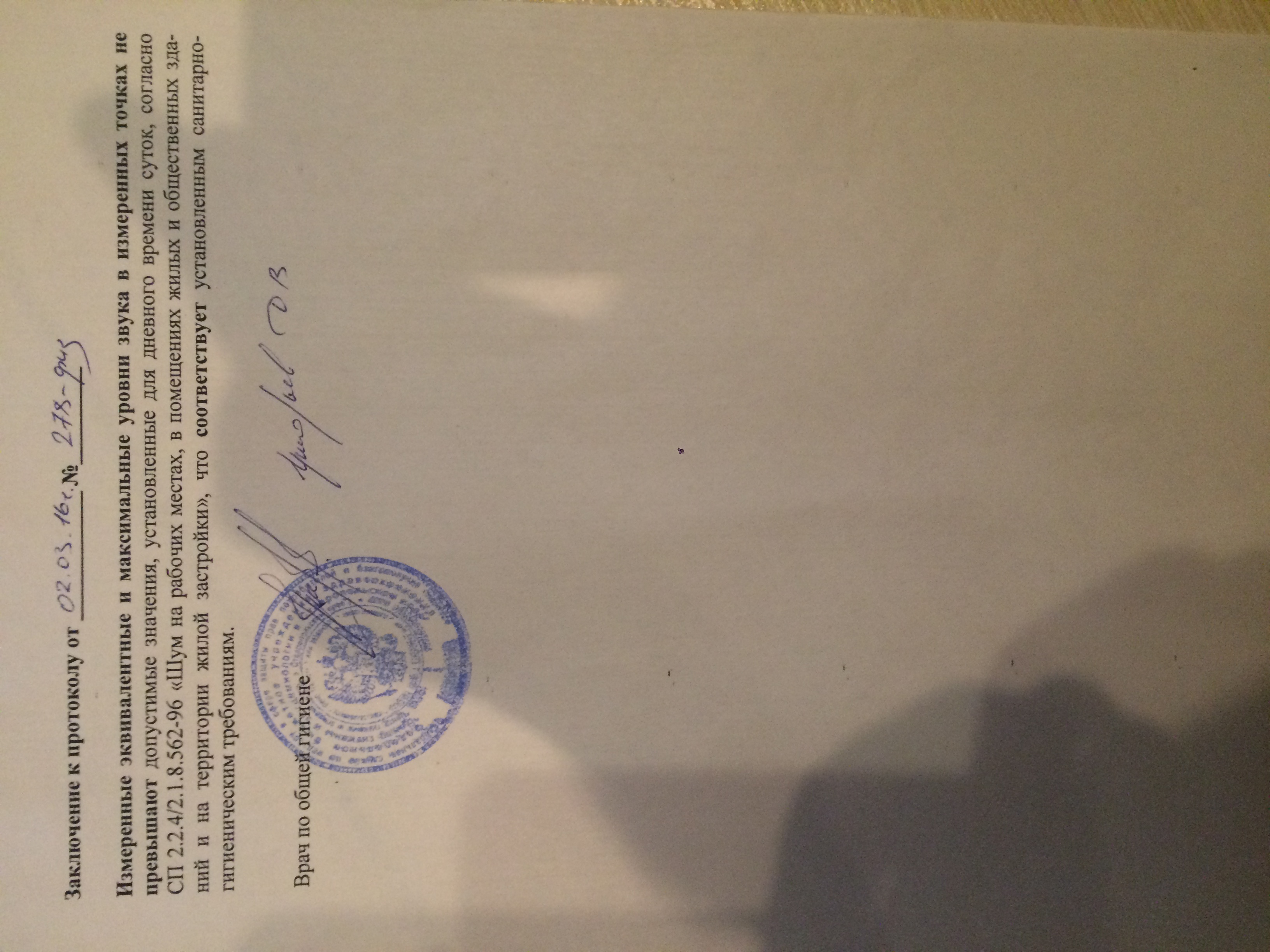 Ну, вот это заключение в части санитарных норм я б рассматривать не стал как настоящее).