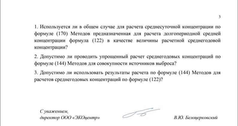 3. Допустимо ли использовать результаты расчета по формуле (144) Методов для расчета среднегодовой концентрации по формуле (122)?