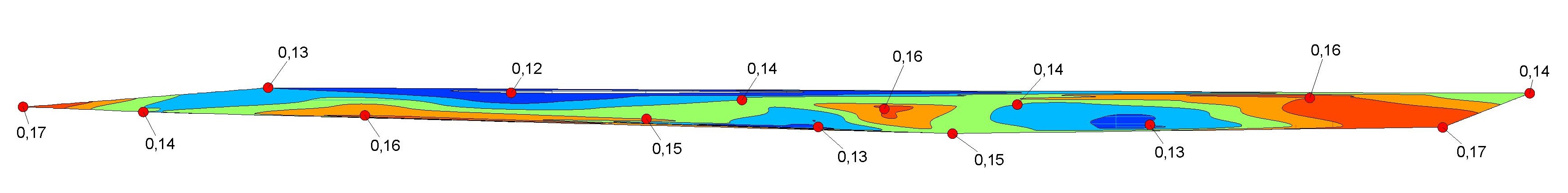 Масштаба там нет, все на чистой пропорции) была подгружена топосъемка, не масштабировалась после подгрузки просто выделены точки замеров и им были присвоены значения искомого параметра. Поэтому единицы масштаба мягко говоря не адекватные)