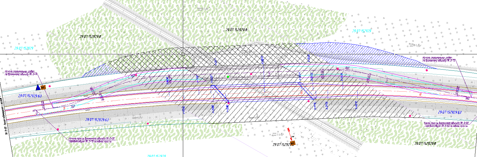 ГЭТИ, 864 м это длинна путепровода и подходов к нему, в эти 2,4 га они вошли. В ТЗ нет ни слова о этих землях, поэтому и была обследована площадь существующей полосы отвода автомобильной дороги. Ведь ГГ экспертиза напишет замечание, что должны быть обследованы все занимаемые земли на этапе строительства. Три новых дополнительных площадок непосредственно примыкают к участку, получилось, что участок стал шире.