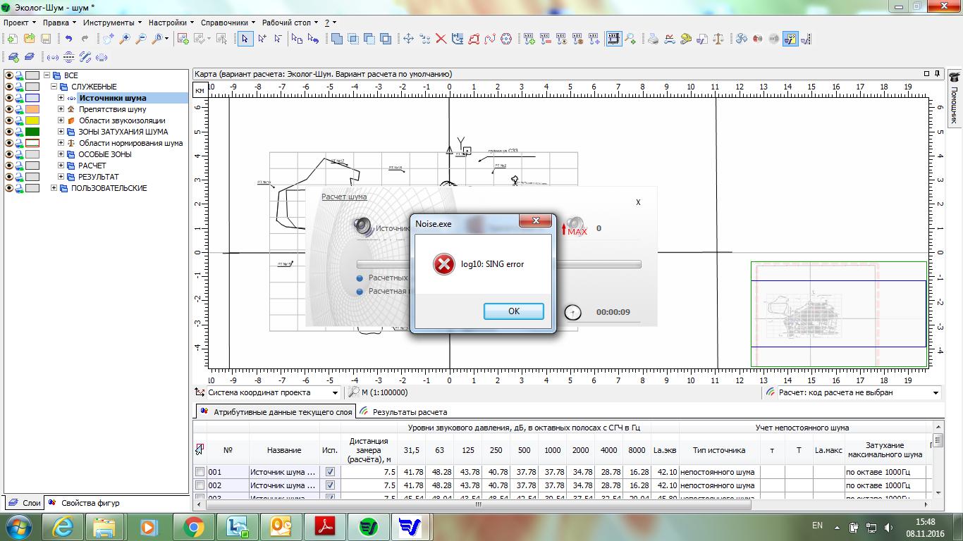 Добрый день,у моей коллеги следующая проблема, после расчета по модулю транспортный поток, общее распространение шума программа не считает, а выдает ошибку, показанную в приложении.
