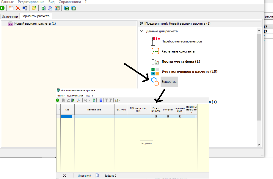 Подскажите, пожалуйста, пропали вещества на вкладке "Вещества" в Варианте расчета. Как их вернуть?