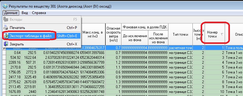 Предварительно в таблице отсортировал значения по колонке "Номер точки", а потом экспортировал ее в Excel. Сортировать по колонка можно и в Excel, кому как удобнее.
