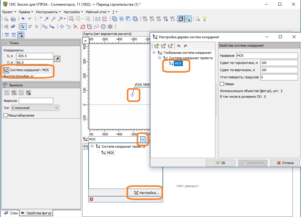 Если вам удобнее работать в ГИС, то там так же есть возможность создание МСК и заведения в ней источников. После создания МСК не забудьте ее выбрать для источника.