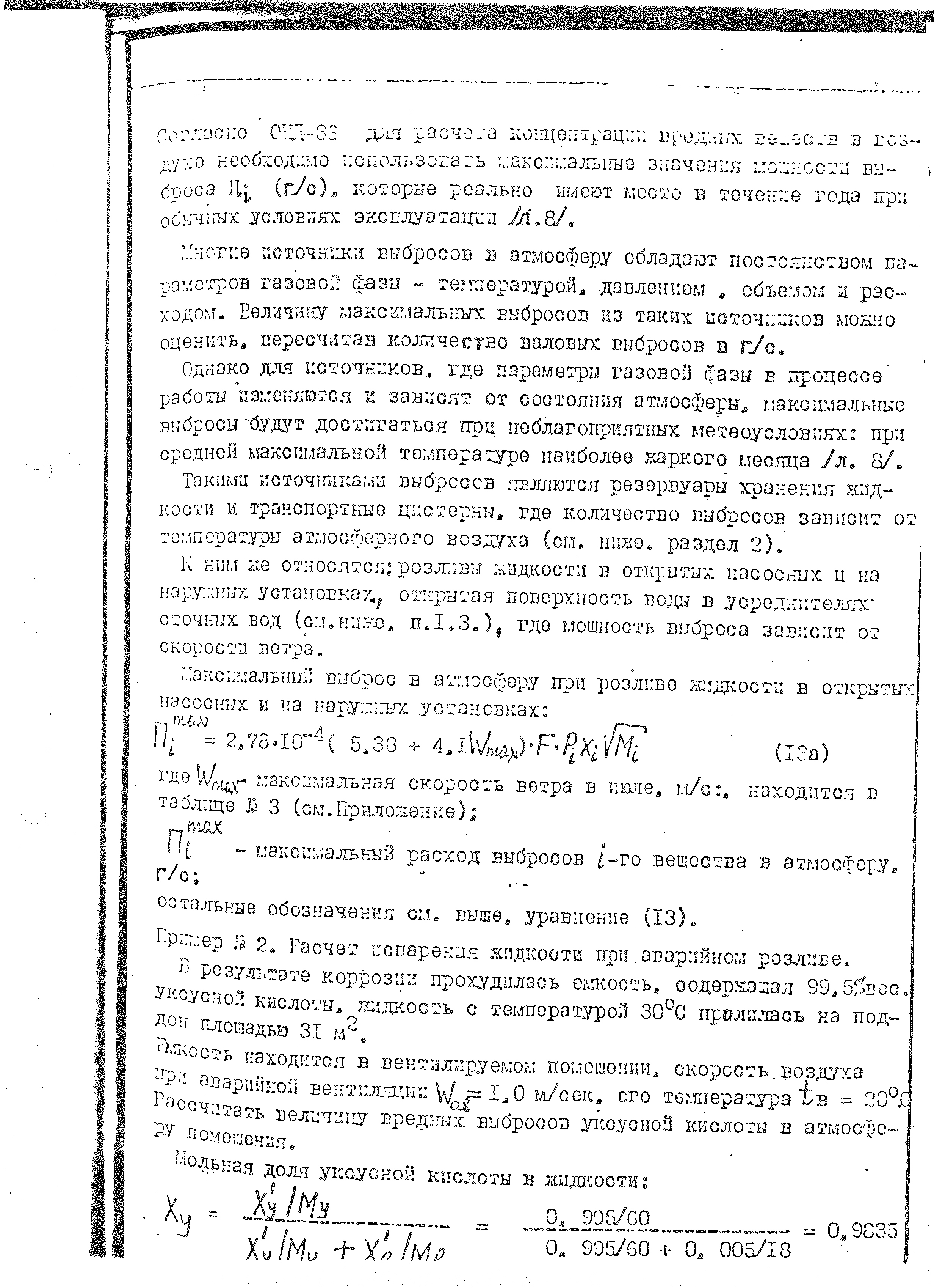Для тех целей, для которых она используется в РМ 62-91-90. Методика расчета вредных выбросов в атмосферу от нефтехимического оборудования, Воронеж, 1990 г. она чудесно подходит и для валовых и для максимальных выбросов. Для расчёта максимальных выбросов от битумирования она не катит, потому как не соблюдается постоянство параметров у источника выбросов - температура, давление и т.п. Уже приводил это примечание ранее.Возникла, мысль о том что, эта формула 13 предназначена только для определения валового выброса. И точка...а мы тут хотим конфетку сделать и получить максимально разовый!!!