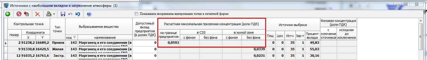 Было бы здорово, если бы можно было в таблицу по результатам рассеивания добавить и другие типы точек, помимо "граница площадки/сзз/жилье". Ведь нормируемых объектов других тоже хватает. А их приходится вносить вручную. Ну и в УПРЗе их бы тоже добавить. Хоть "нормируемый 1/нормируемый 2/нормируемый 3"