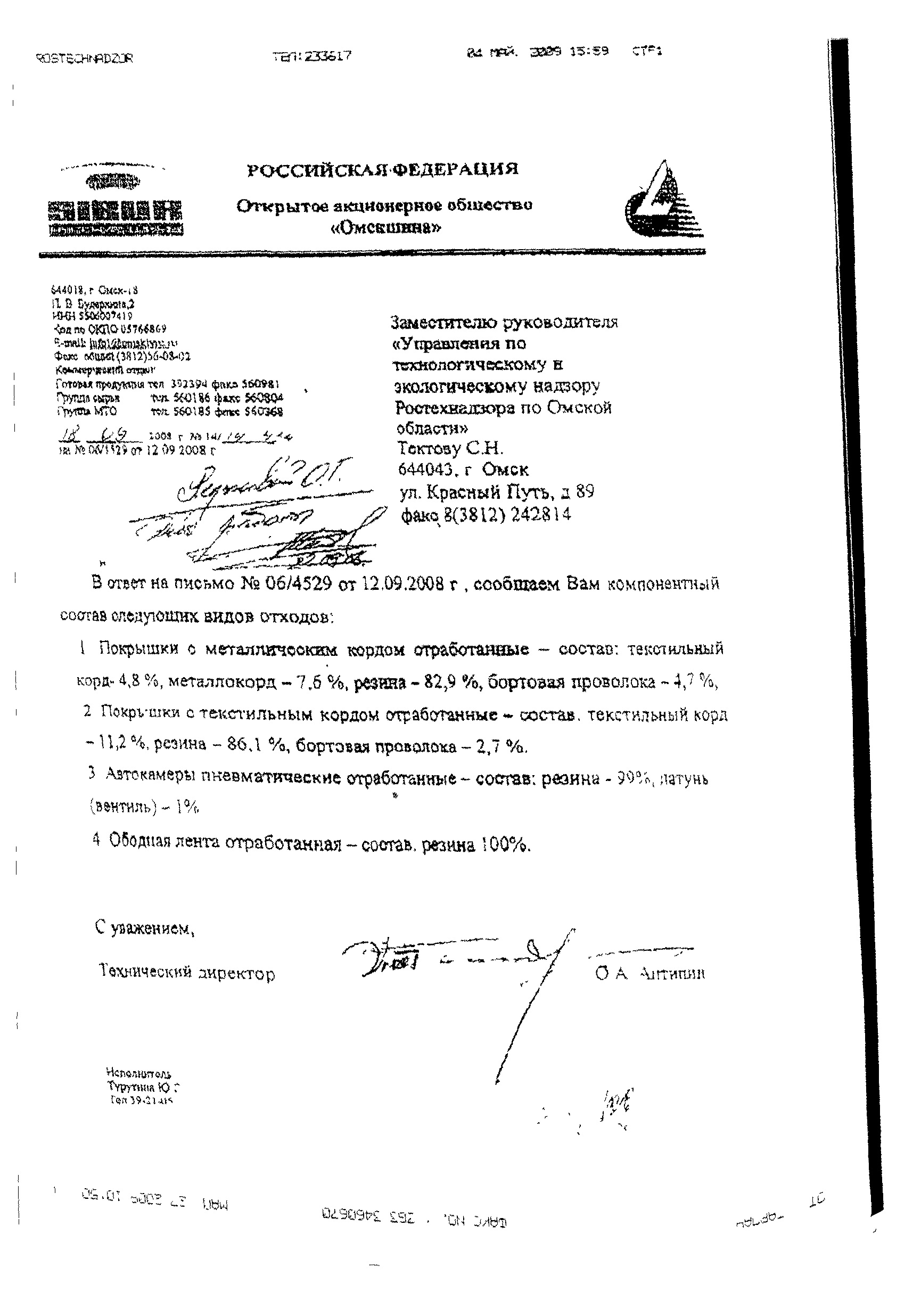 Обтирочный материал, загр. маслами есть в Кузьмине и в МР по разработке ПНООЛР для ТЭС и котельных (1998г.), загрязнённый песок тоже в МР, аккумуляторы - Кузьмин. А что за письмо на покрышки?