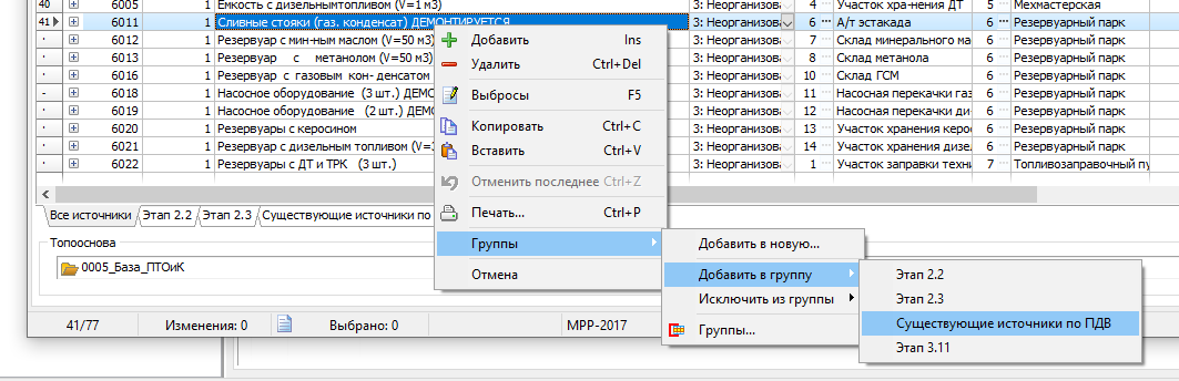Добрый день. Обратите внимание включены ли ваши источники в группу (рис. Группа НДВ) и после перехода в УПРЗА должна стоять галочка...