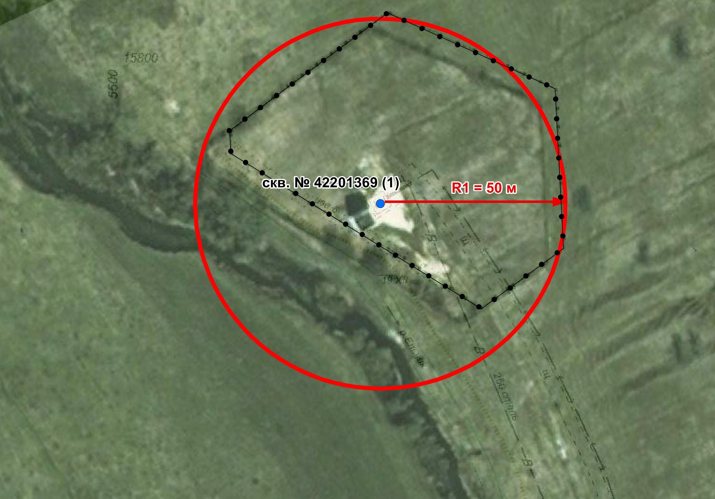 п. 2.2.1.1. того же санпина утверждает что граница первого пояса устанавливается на расстоянии не менее 50 м - при использовании недостаточно защищенных подземных вод. То есть, вполне можно предположить что рассматриваемая скважина питается из протекающего ручья и вполне может быть подрусловым, что означает необходимость организации ЗСО как для поверхностного источника водоснабжения, в соответствии с п. 2.3.1.1. Граница первого пояса ЗСО водопровода с поверхностным источником устанавливается, с учетом конкретных условий, в следующих пределах: