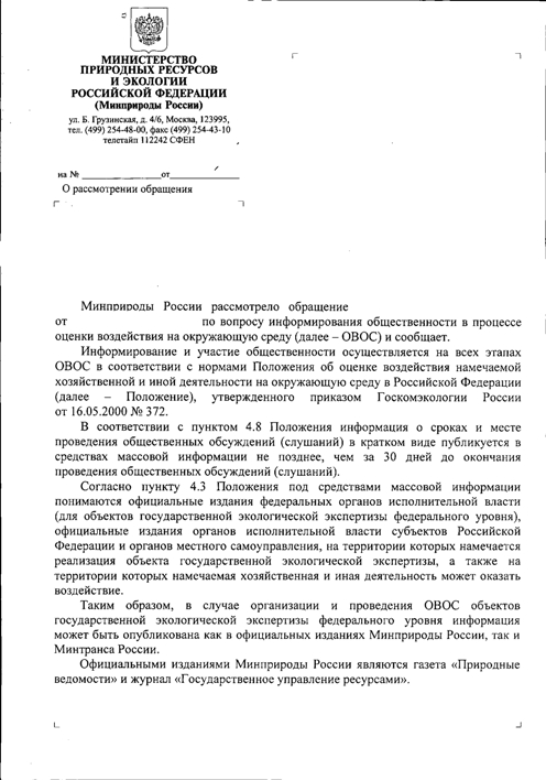 Re: Когда разрабатывается ОВОС