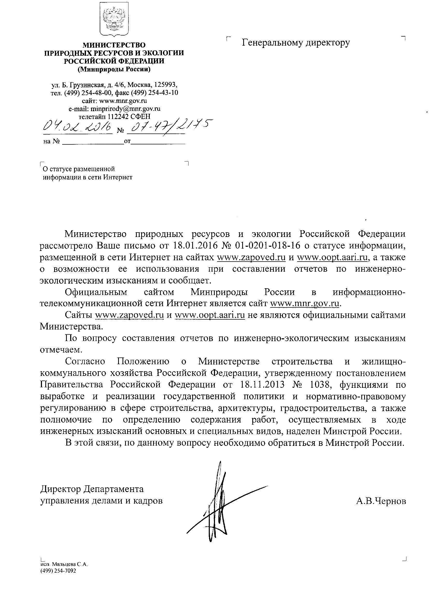 Тот ответ вынесен на обсуждение Totoreal 08.11.2015, где он на мой взгляд резонно отмечает, что это всего лишь письма, в том числе с мнением отдельного департамента на конкретно взятый отрезок времени. Предлагаю по прежнему делать запросы Минприроды РФ и получать конкретные ответы под обозначенные в письме объекты. Мы, например, так и поступаем - пока (последний раз в декабре 2015) приходят "нормальные" ответы и при этом того же Департамента государственной политики и регулирования в сфере окружающей среды, который в августе "выдал" ссылку на сайт http://www.zapoved.ru/